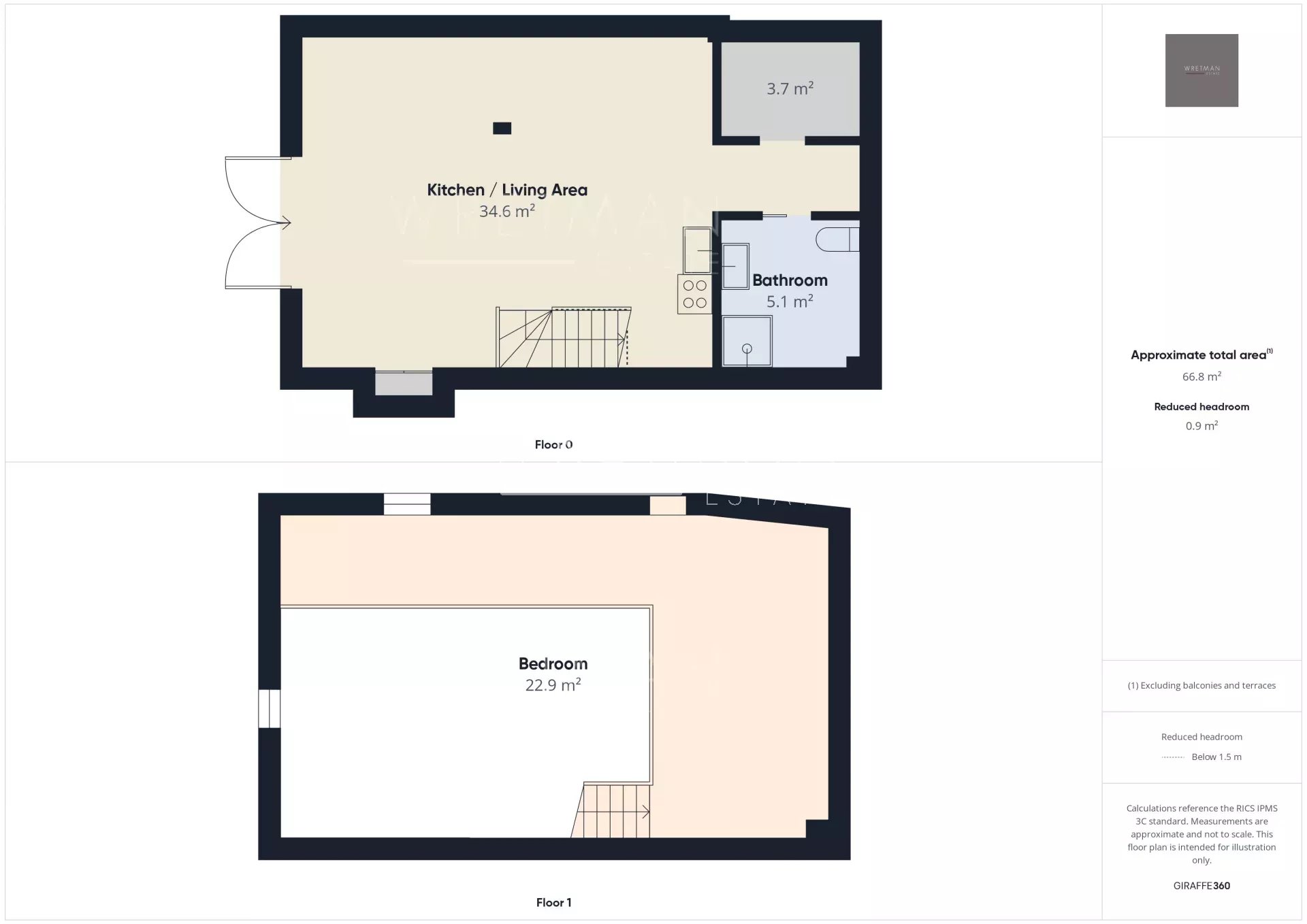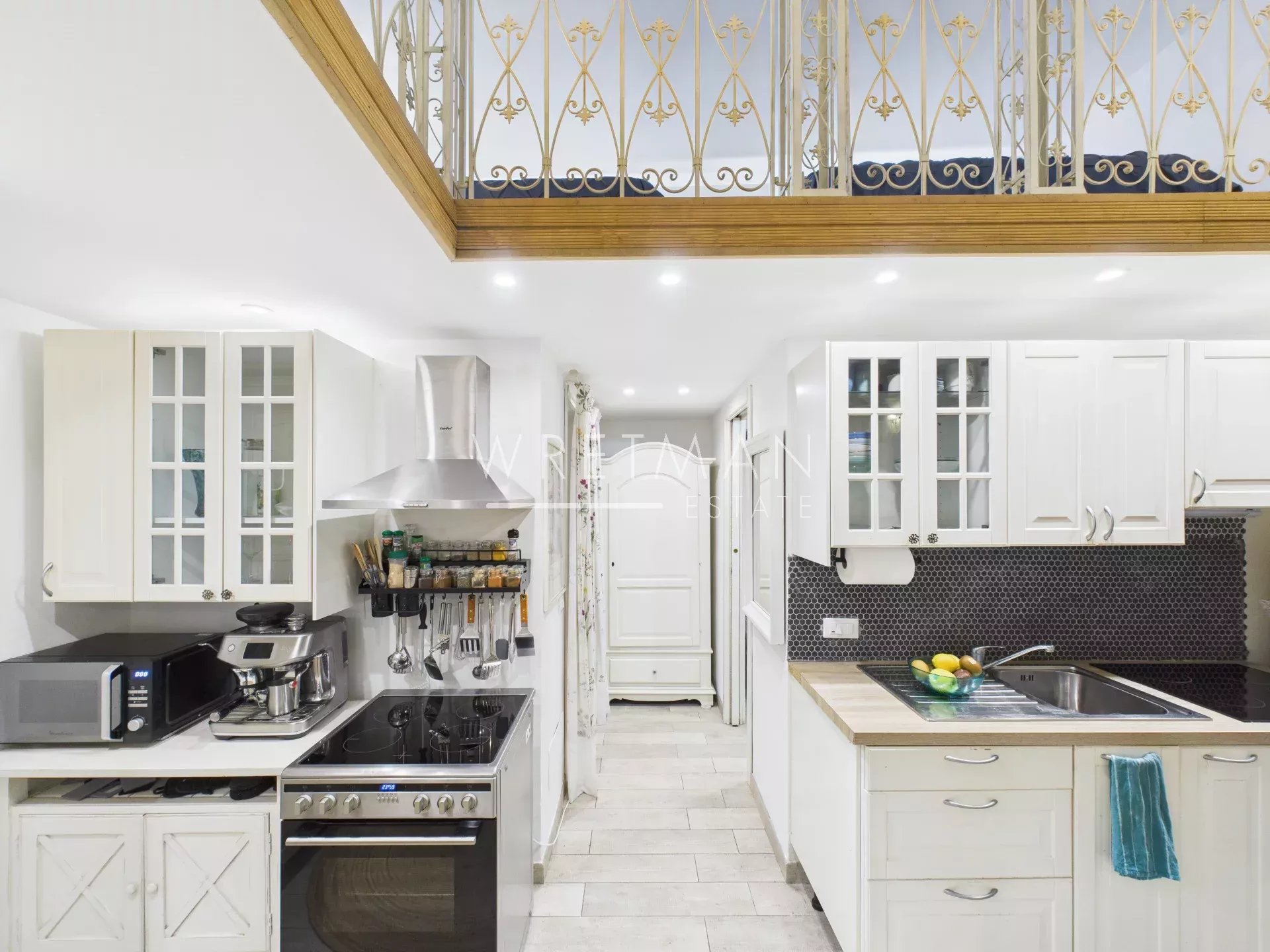 Son entrée privée avec fenêtre s’ouvre sur un vaste et lumineux séjour avec cuisine ouverte, d’une spacieuse mezzanine équipée d’un coin nuit et d’un bureau.