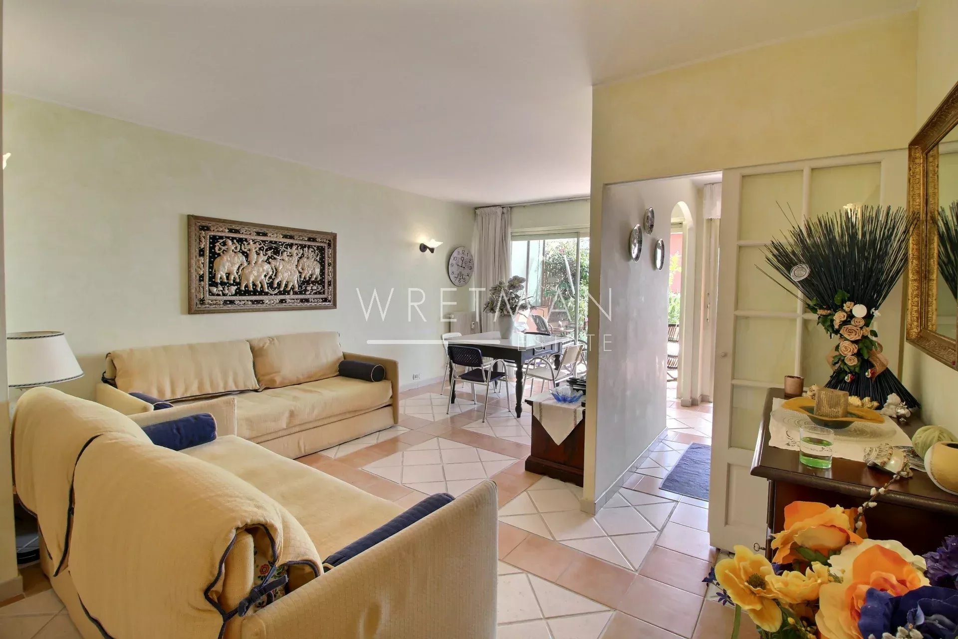Cet appartement comprend, un vaste séjour avec une cuisine toute équipée (possibilité d’ouvrir complètement sur le séjour), ainsi que d’une grande chambre avec accès direct à une superbe terrasse de plus de 40 m² offrant une vue imprenable sur la mer, le tout complété par un petit jardin privatif.