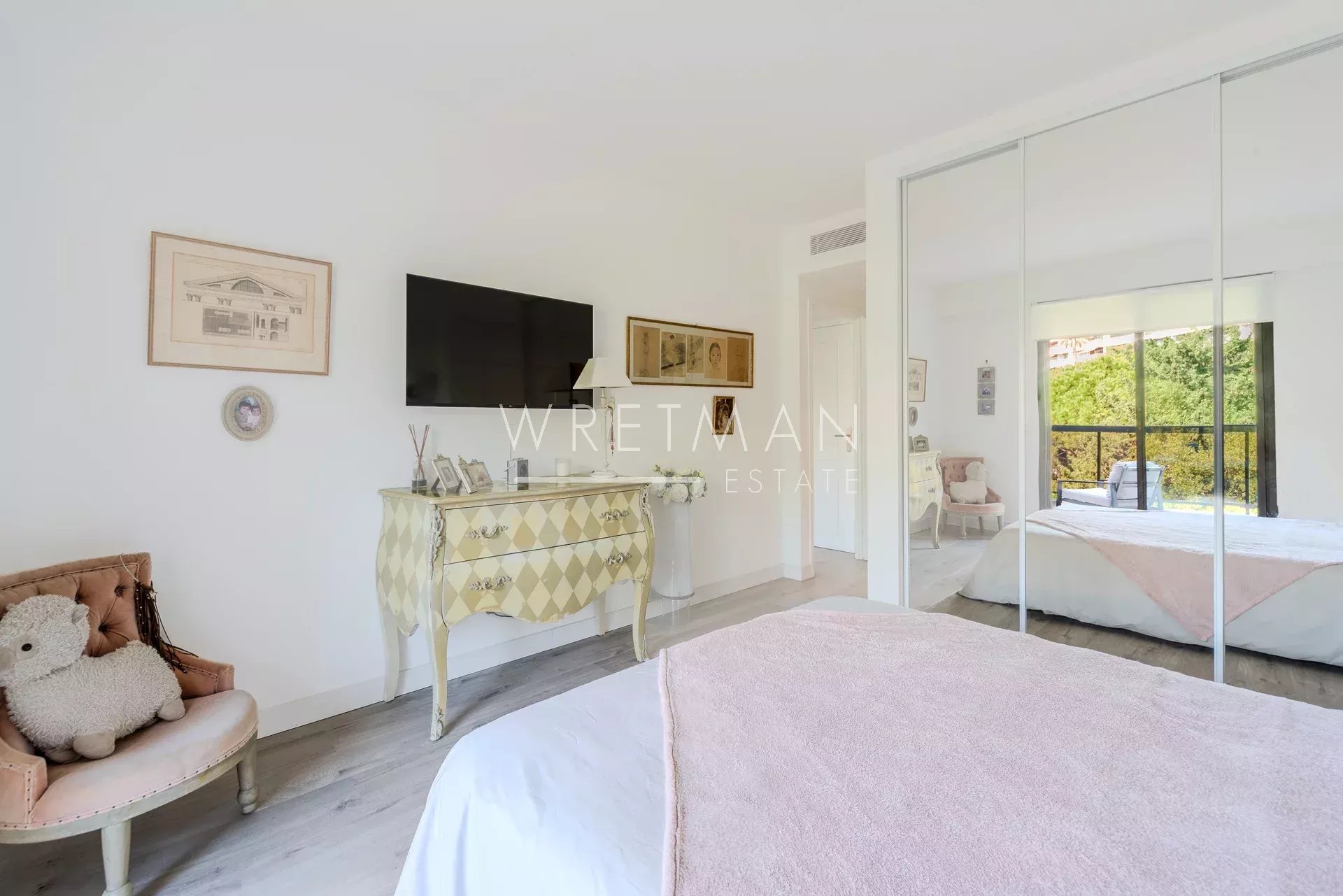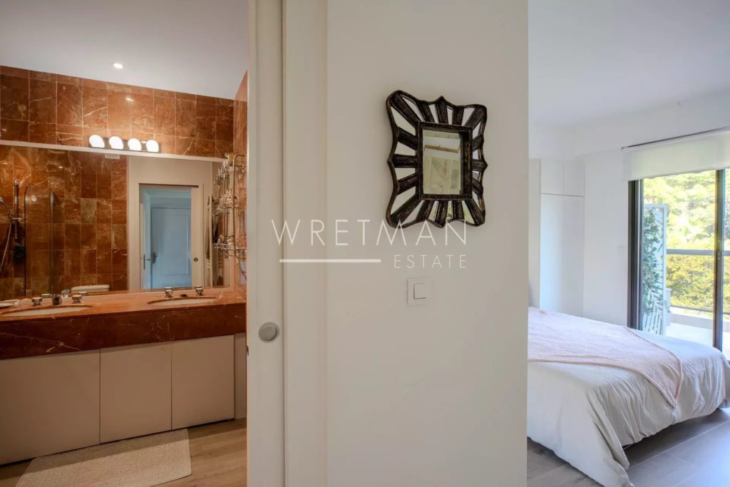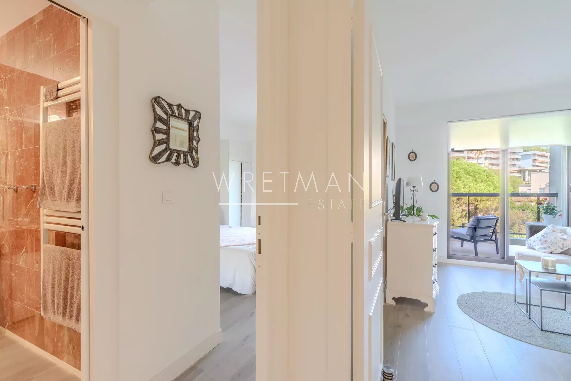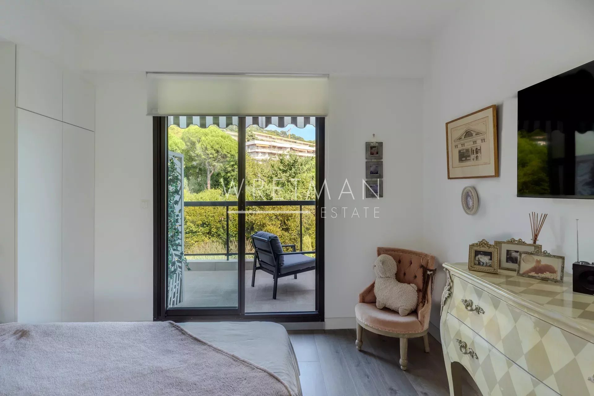 Traversant, climatisé et bénéficiant d’un calme absolu, l’appartement profite d’une luminosité exceptionnelle. Il s’ouvre sur une première terrasse de 14,51 m² exposée Sud-Ouest, offrant une vue dégagée sur la végétation, un agréable aperçu mer ainsi qu’une vue sur l’Estérel.