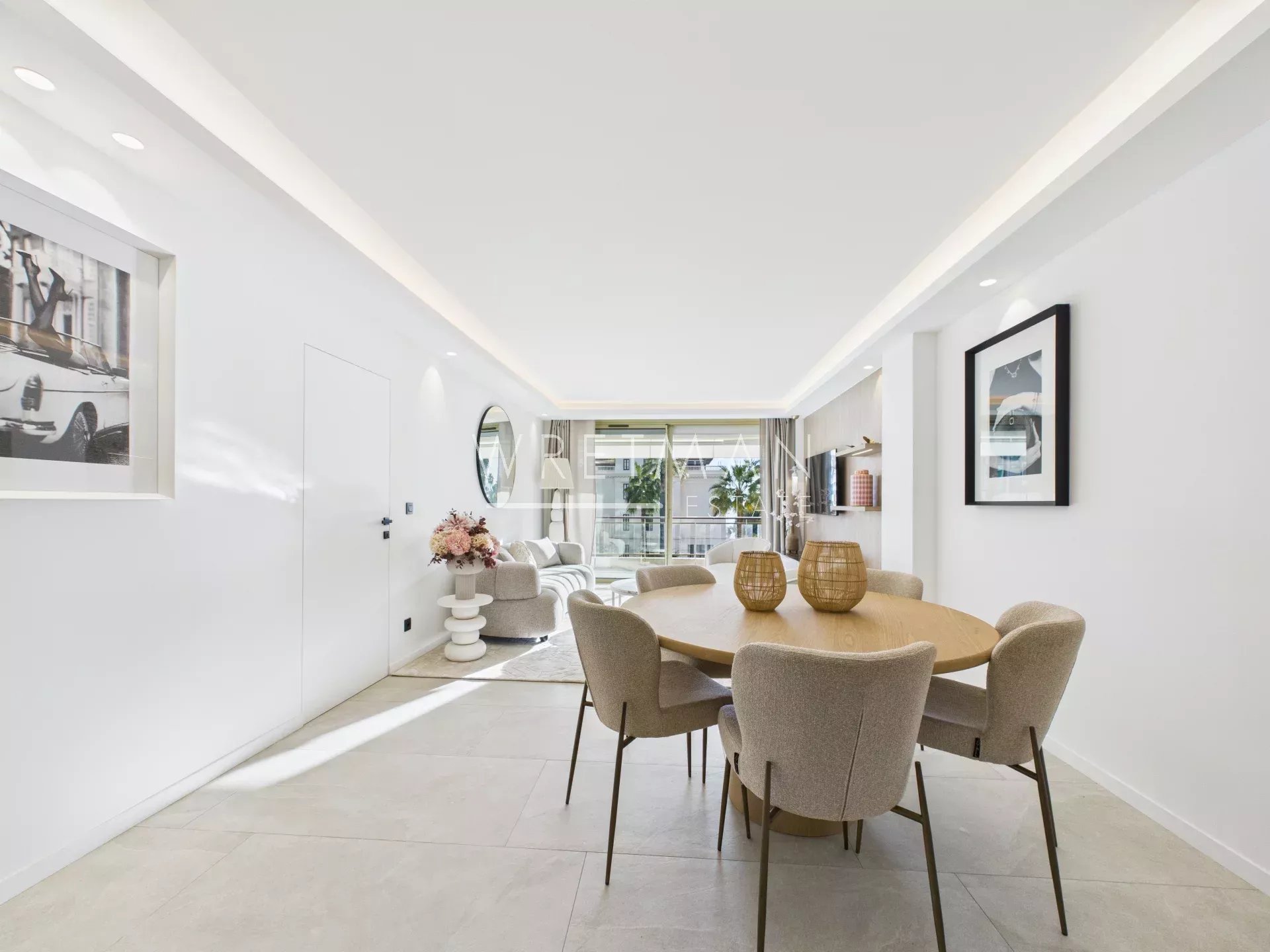 Splendide appartement 3 pièces de 84,56 m² situé dans le très prisé quartier de la Croisette à Cannes, à quelques pas des plages, de toutes les commodités et du Palais des Festivals.