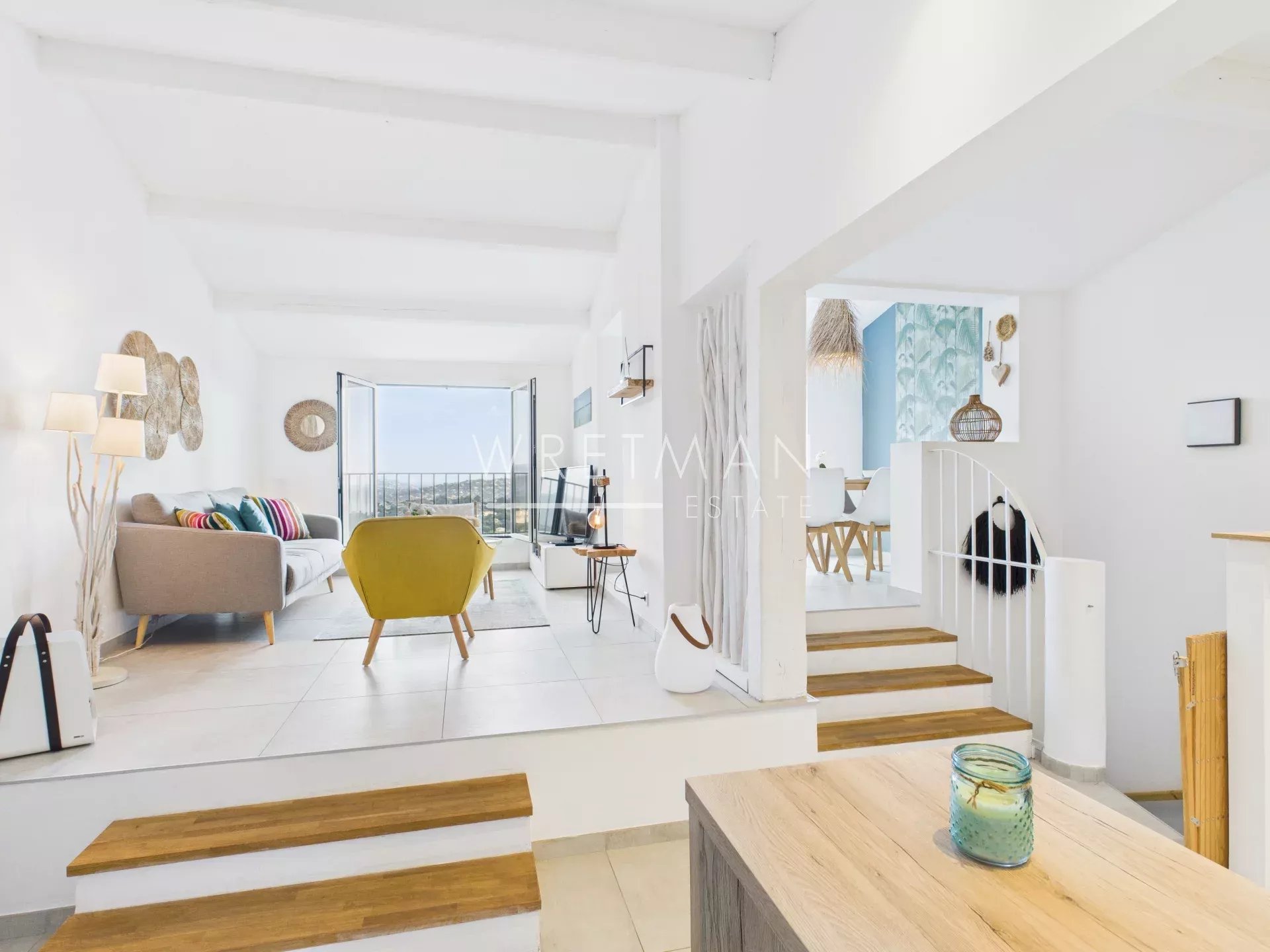 D’une surface habitable de 67 m², il est intelligemment réparti sur deux niveaux. Au niveau d’entrée, vous serez accueilli dans un séjour lumineux, prolongé par un balcon offrant une large vue sur la mer. Une salle à manger semi-séparée s’ouvre également sur ce balcon. Ce niveau comprend aussi une cuisine moderne entièrement équipée.
