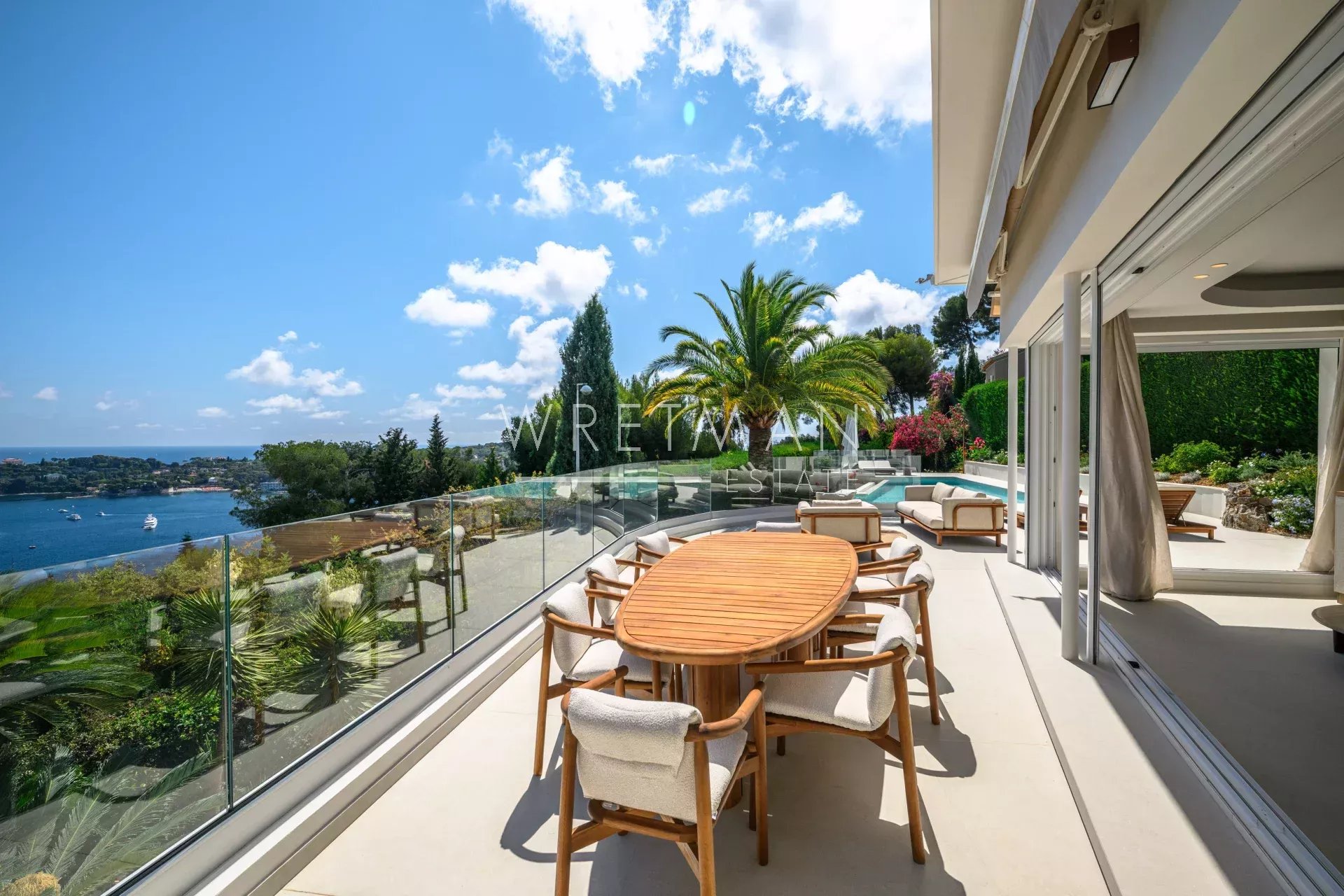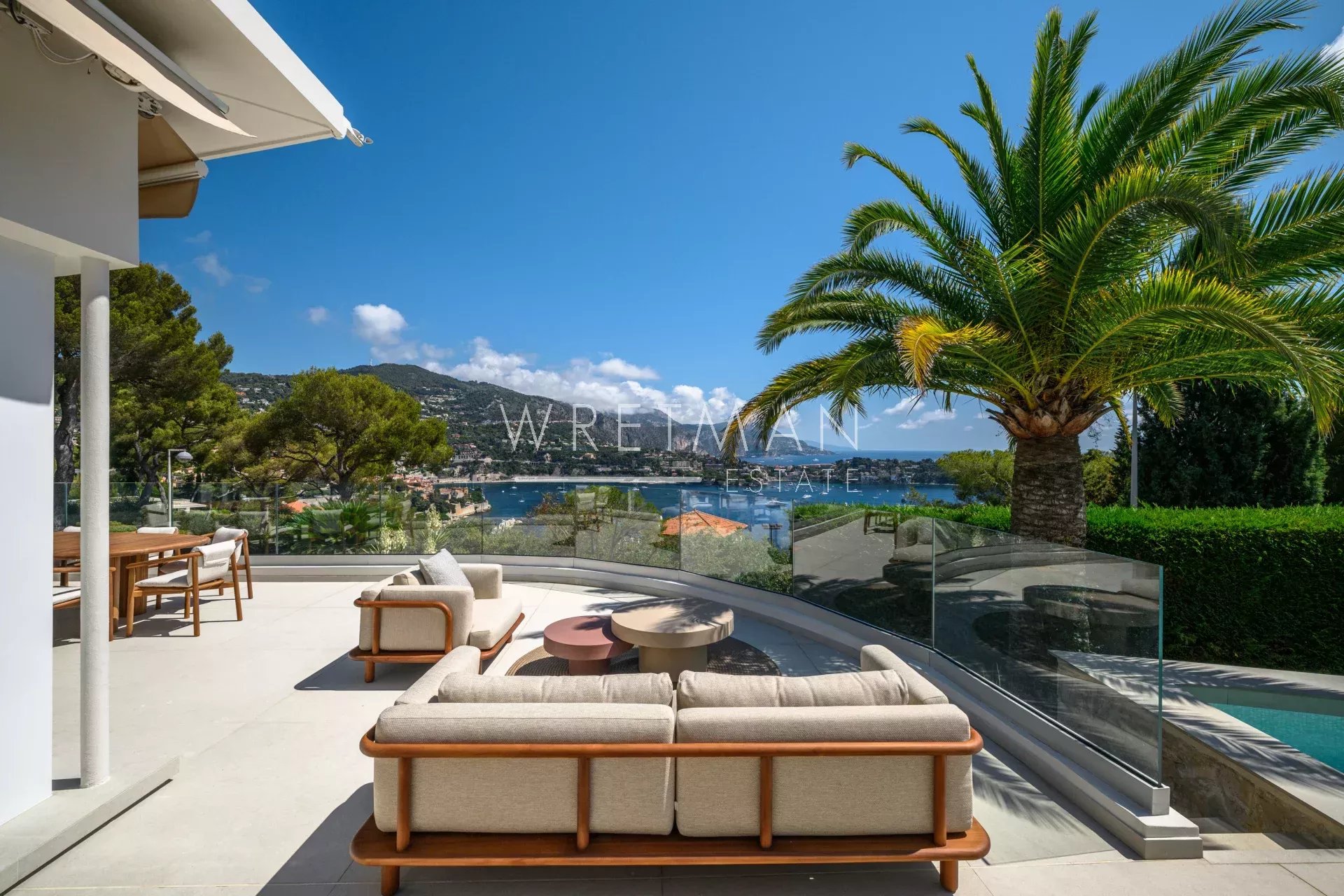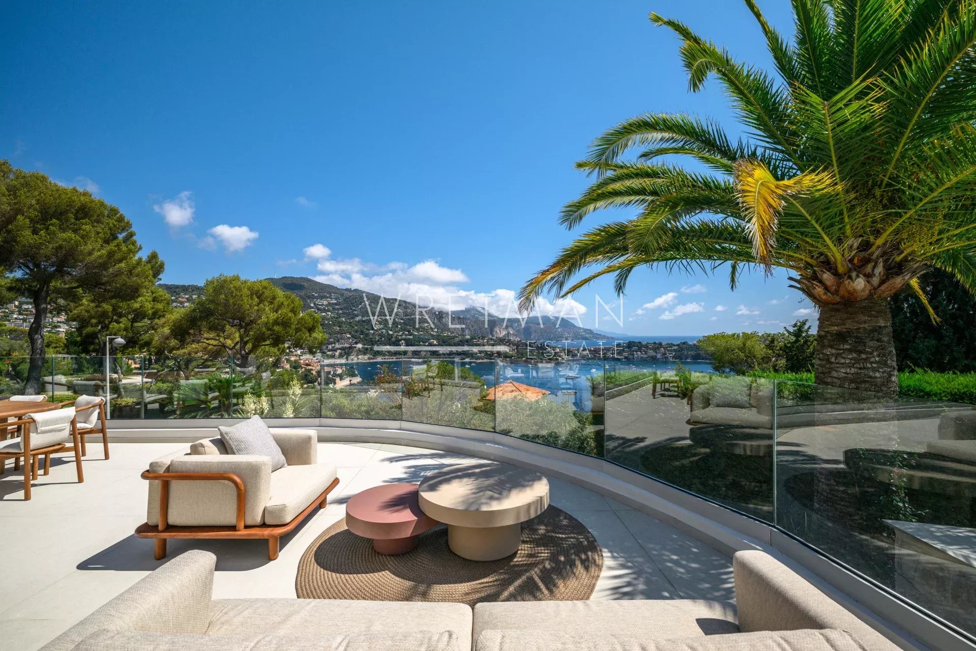 Prestigieuse adresse et vue à couper le souffle sur la Méditerranée, St Jean Cap Ferrat et la baie de Villefranche-sur-Mer, cette villa entièrement rénovée sur un terrain d’environ 728 m² offre un cadre de vie luxueux et paisible.