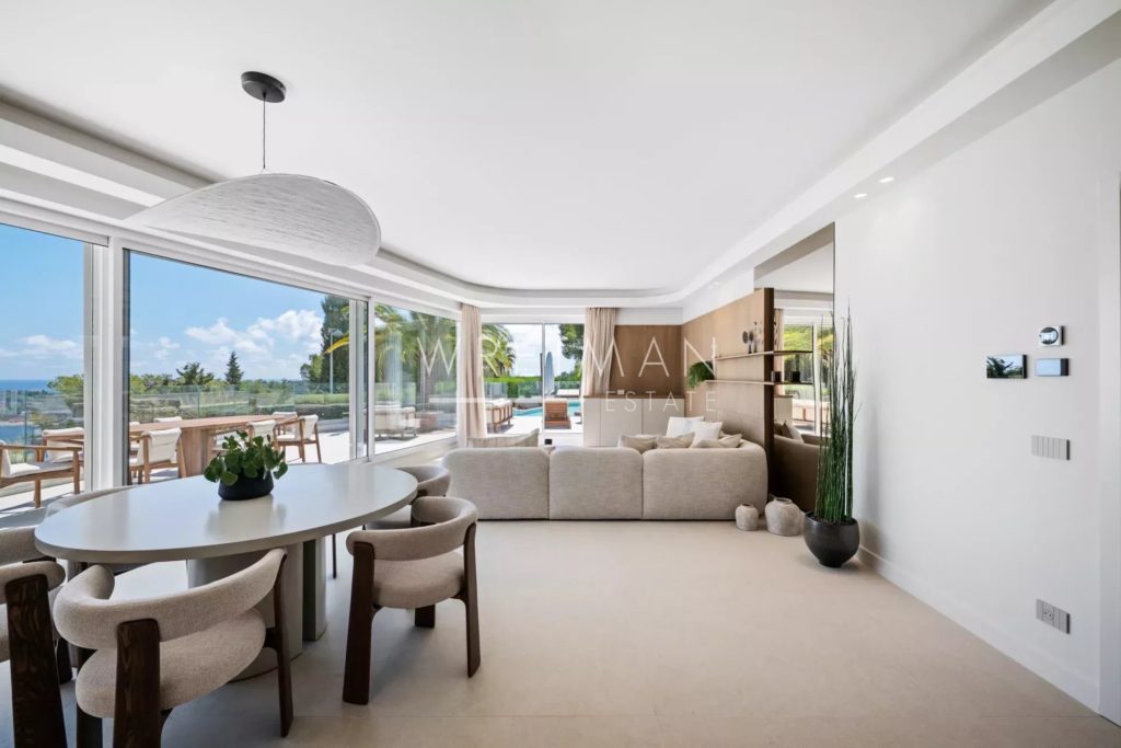 Cette splendide villa propose environ 146 m² d’espace de vie répartis sur deux niveaux. Le rez-de-chaussée comprend un vaste séjour ouvrant sur une grande terrasse avec piscine et une vue panoramique imprenable sur la mer — un cadre idéal pour se détendre ou recevoir famille et amis. De grandes baies vitrées permettent une transition fluide entre intérieur et extérieur, offrant une vue spectaculaire sous tous les angles.