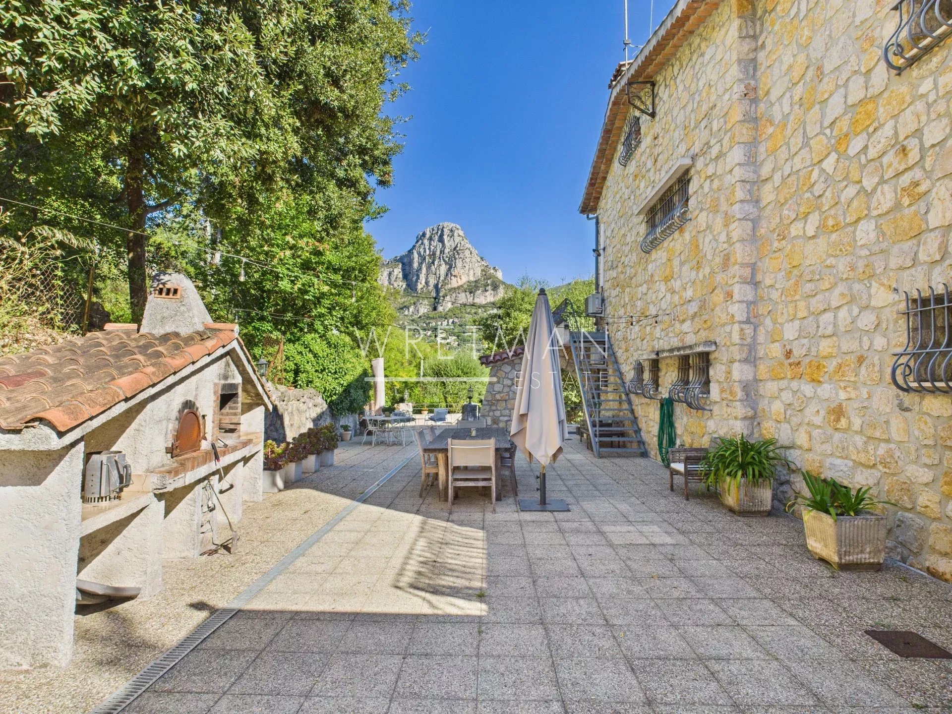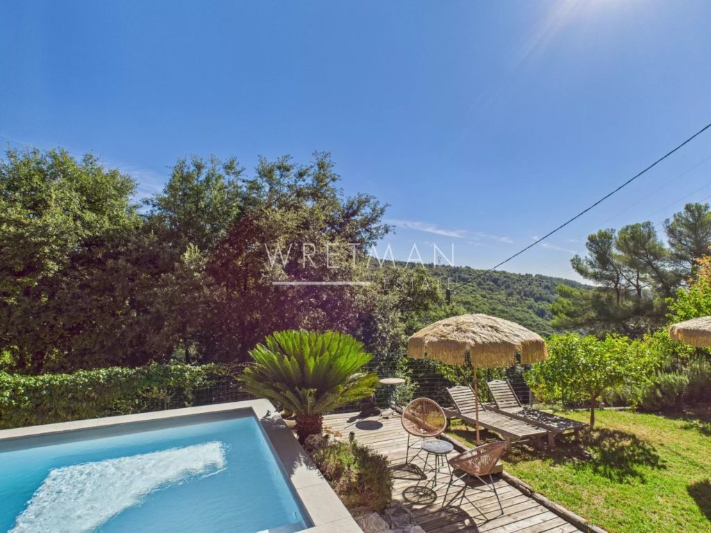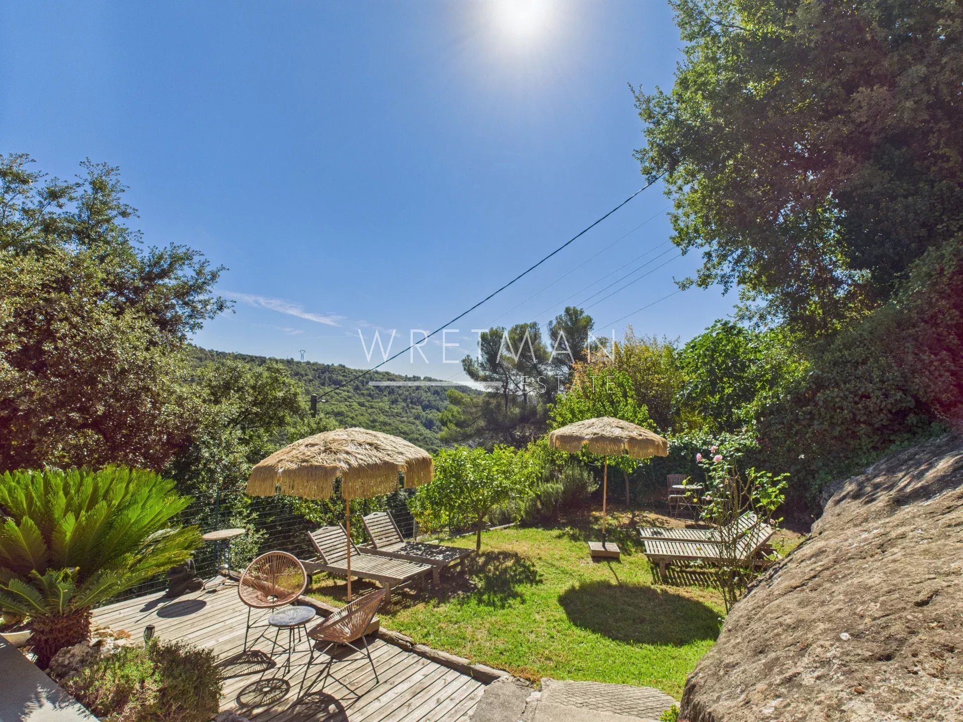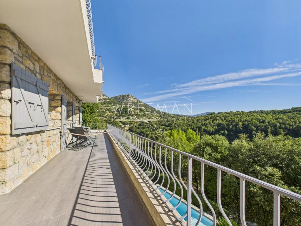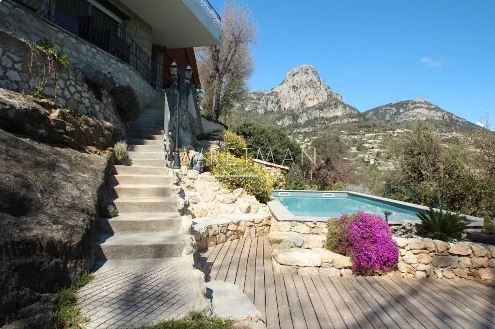 À l’extérieur, vous profiterez d’un jardin paysager d’environ 2 000 m² agrémenté d’une piscine et d’une vue dégagée sur les Baous. Aucun travaux de rénovation importants n’est à prévoir.