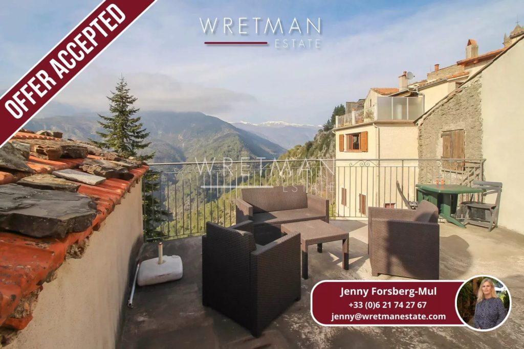 Découvrez y une charmante maison de village située au calme, se composant d’un lumineux séjour, d’une cuisine en bois ouverte avec un accès sur la grande terrasse et sa vue panoramique époustouflante sur les montagnes du parc du Mercantour.