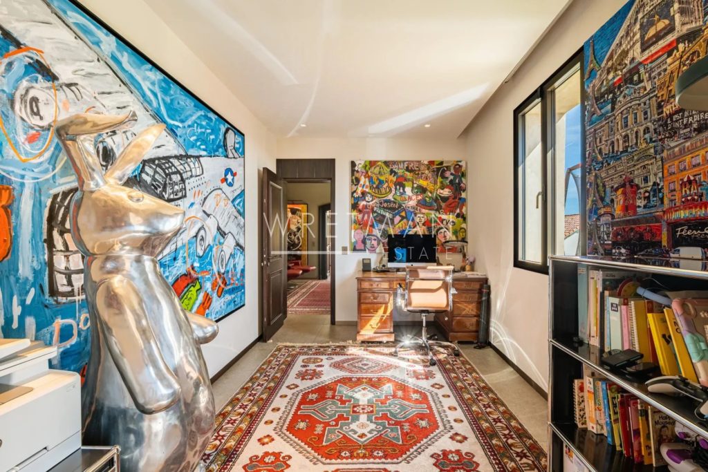 La villa comprend 10 pièces, dont 4 chambres, chacune disposant de sa salle de douche incuant une suite parentale avec dressing et sa salle de bain. Un vaste salon de 70 m² agrémenté d’une majestueuse cheminée, d’une salle à manger raffinée, d’un bureau, d’un salon TV ainsi que de toilettes invités.