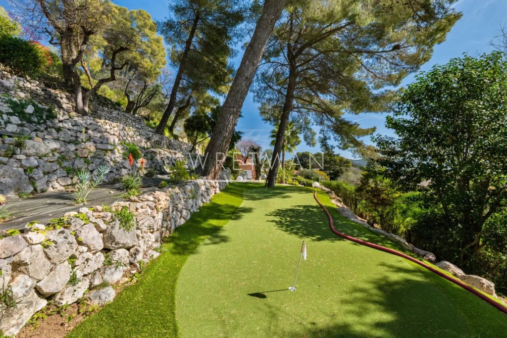 Le jardin soigneusement aménagé dispose d’un arrosage automatique, d’un éclairage extérieur, d’un terrain de pétanque et d’un putting green.