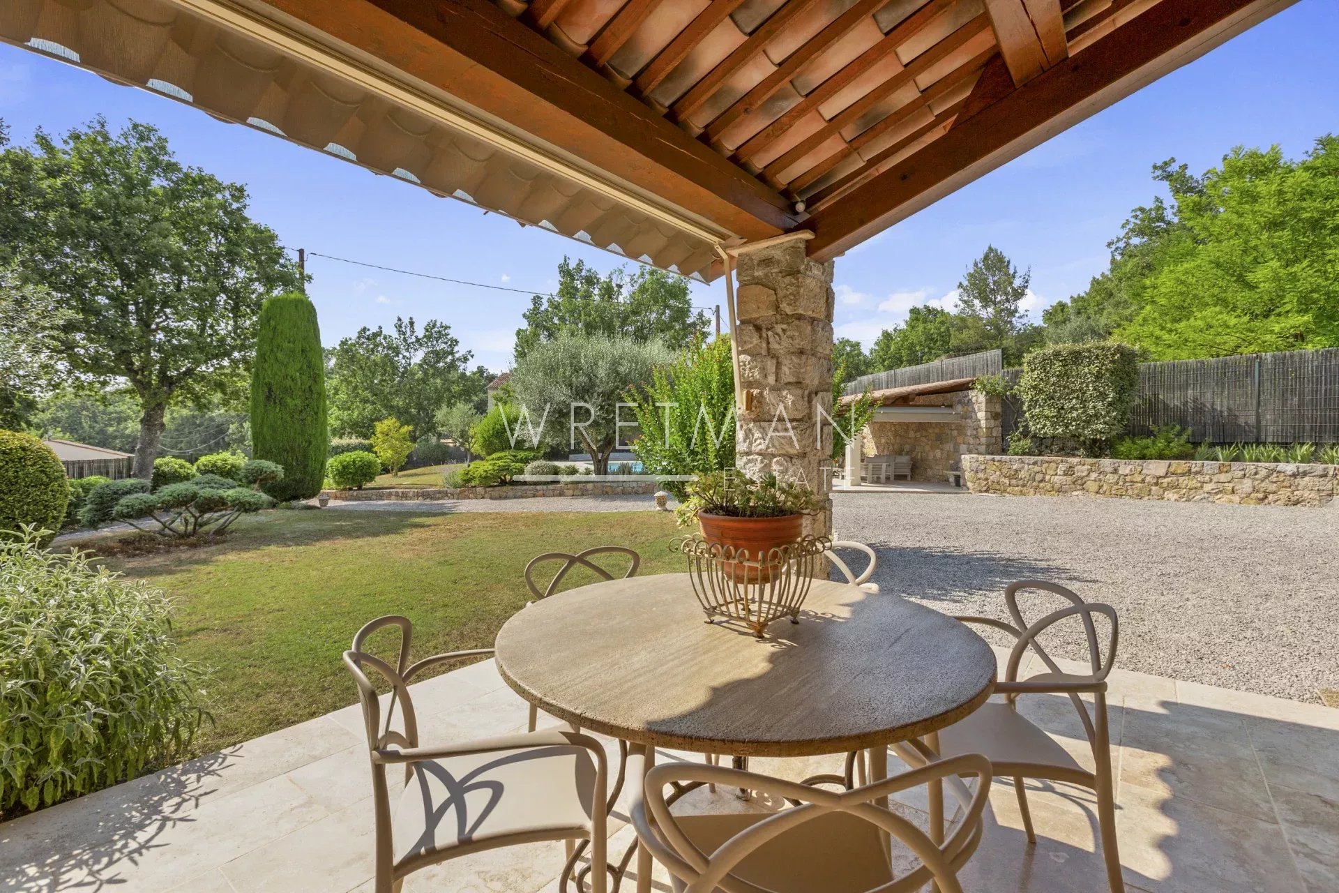 Le terrain de 2200m², magnifiquement paysagé, comprend une piscine, une terrasse spacieuse, un pool house, un bassin de 50m³, un puits équipé et un système d’éclairage.