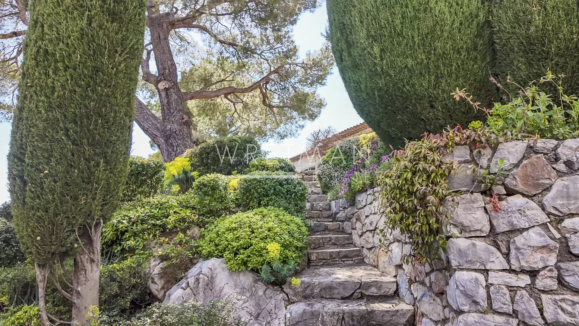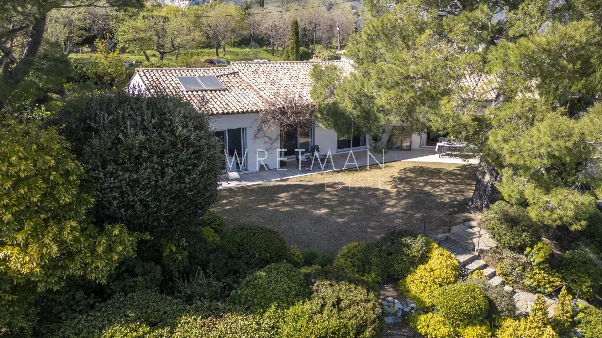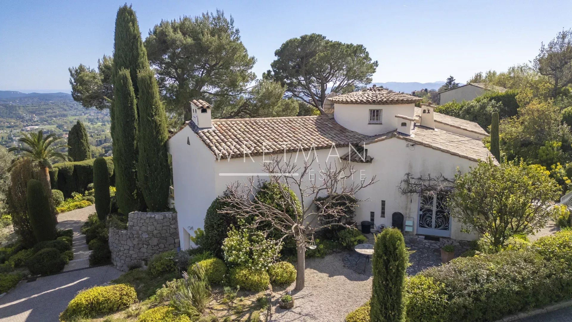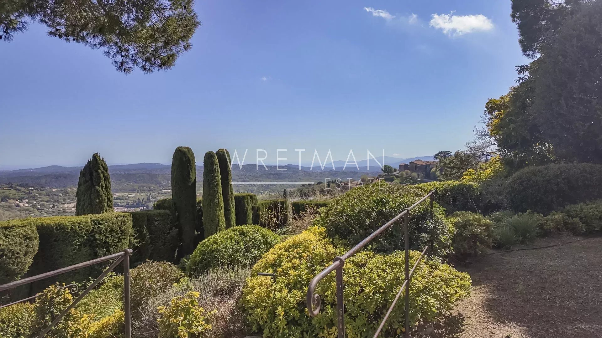 Charmante propriété provençale d’environ 190 m² avec vue panoramique sur la mer et les jardins arborés. Située dans un petit domaine sur les collines de Châteauneuf-de-Grasse, à distance de marche des commerces et cafés du Pré du Lac.