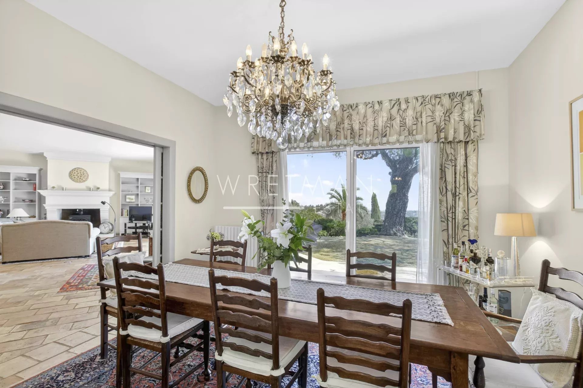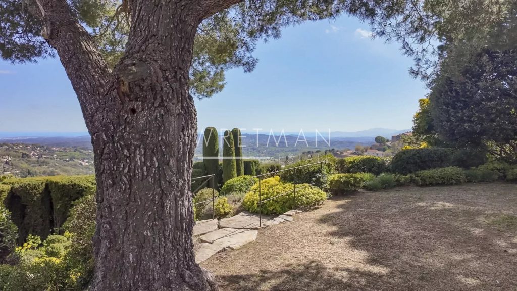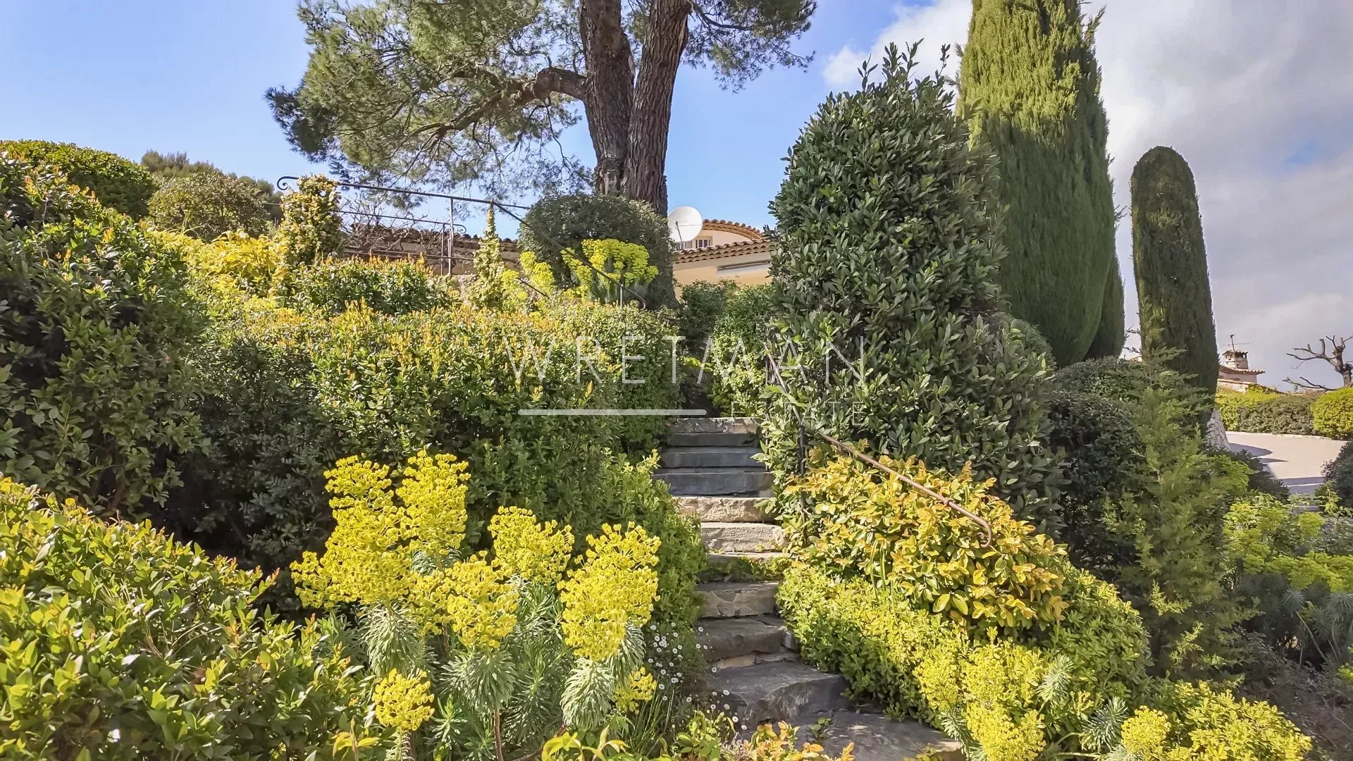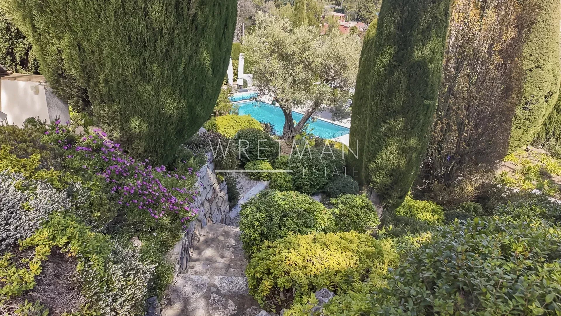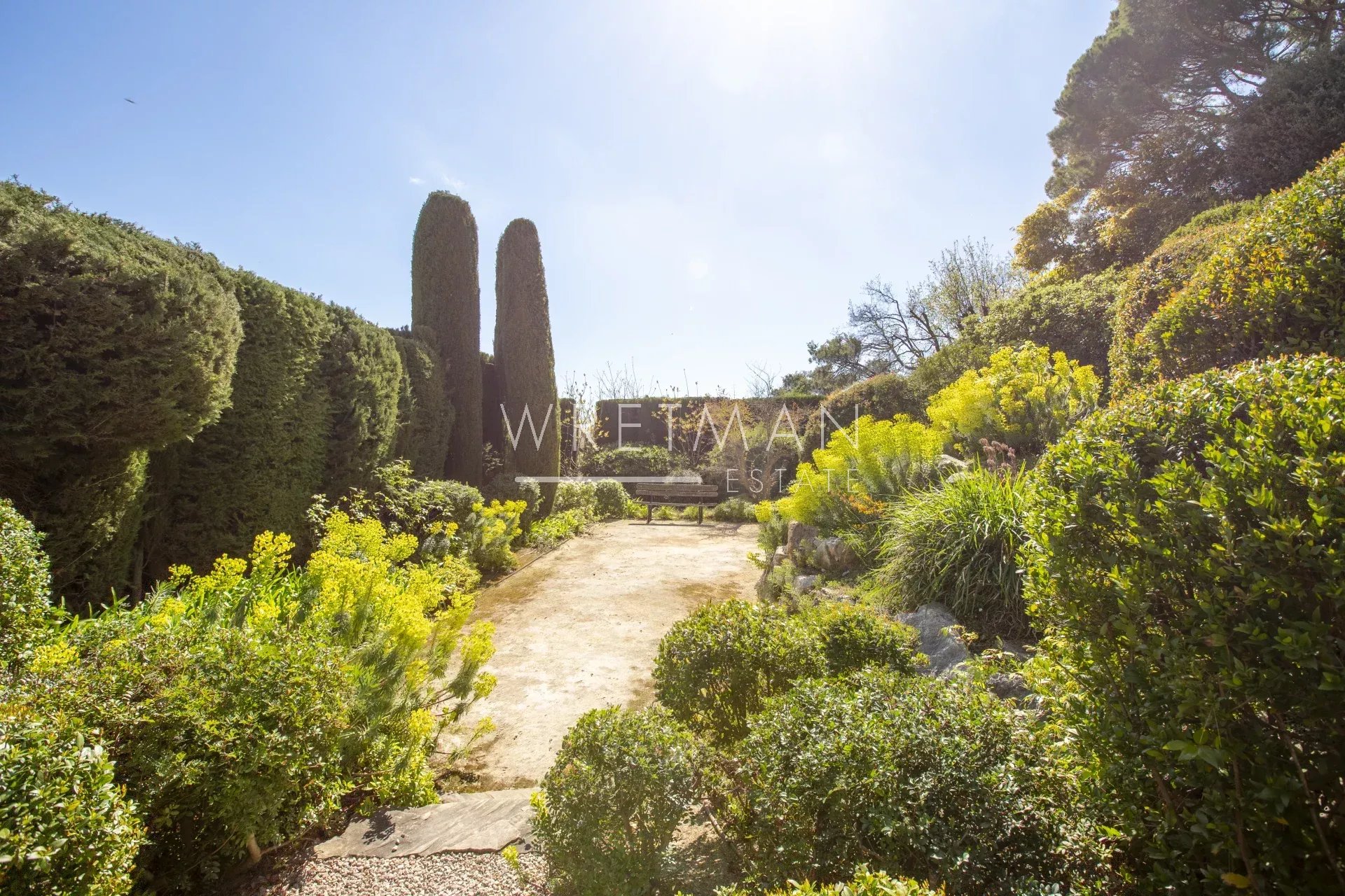 Charmante propriété provençale d’environ 190 m² avec vue panoramique sur la mer et les jardins arborés. Située dans un petit domaine sur les collines de Châteauneuf-de-Grasse, à distance de marche des commerces et cafés du Pré du Lac.