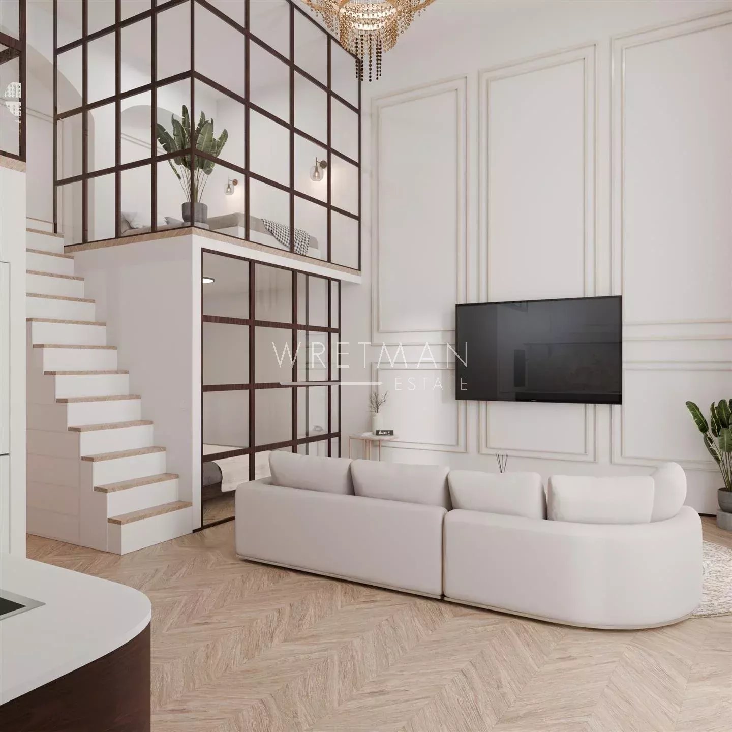 The apartment comprises a living room with an open kitchen, a master bedroom, a shower room with toilet, as well as a mezzanine hosting a guest bedroom and a small office. A balcony provides an unobstructed view of the residence’s garden, bringing tranquility and greenery. The property is sold with a cellar and benefits from shared parking within the residence. Ideally located just a five-minute walk from Menton’s city center, in the sought-after Riviera district, this apartment represents a rare and elegant opportunity.