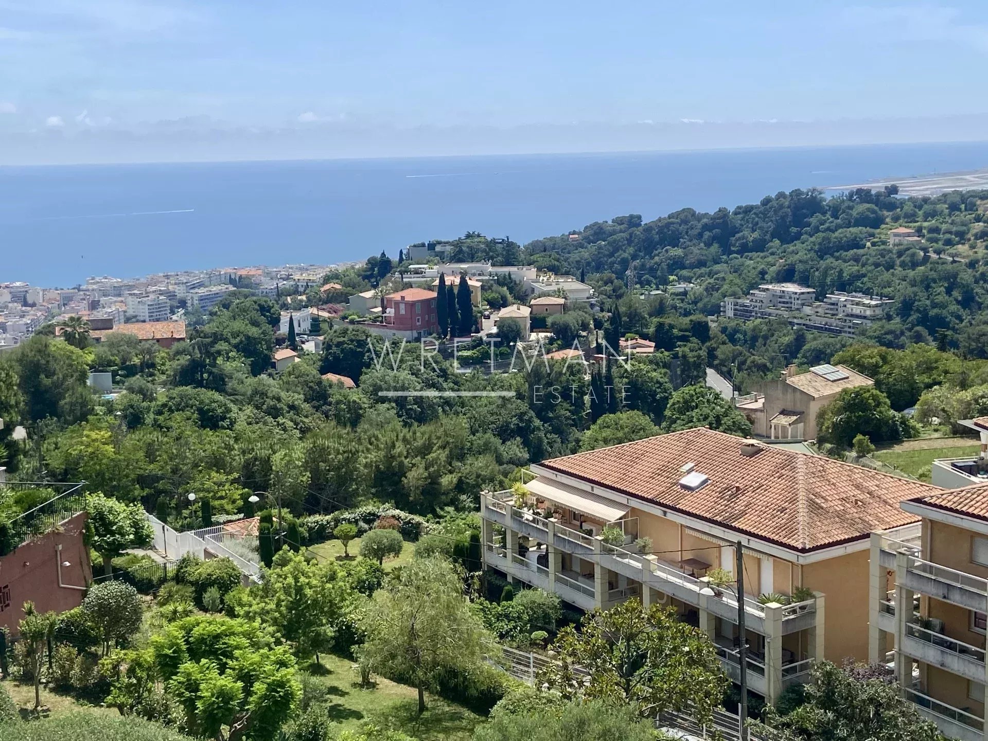 This comfortable 3-bedroom corner apartment, crossing, with terraces surrounding the three sides of the apartment, is situated on the heights of Parc Impérial, on CORNICHE BELLEVUE, only 10 minutes from the centre of Nice and the beaches.