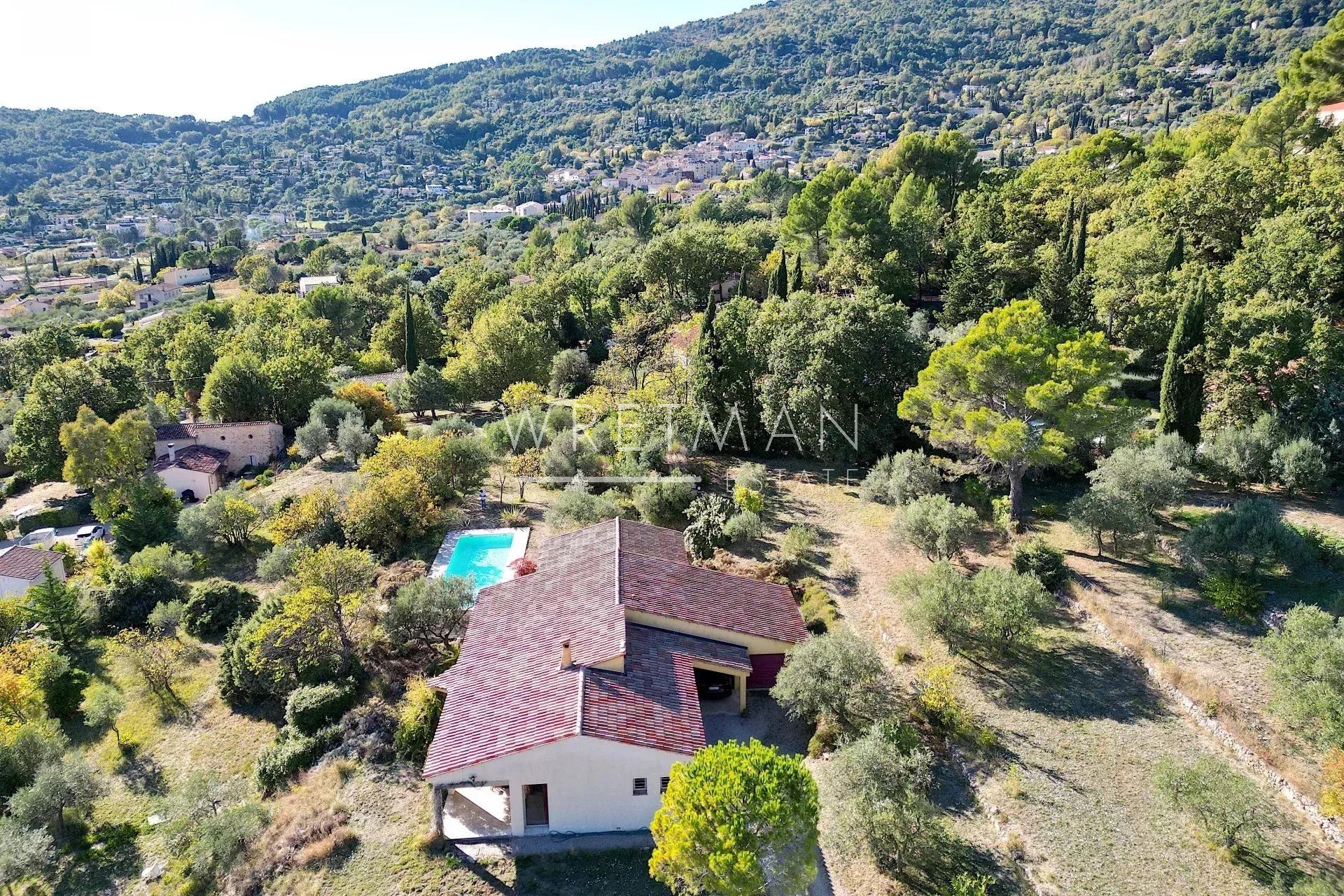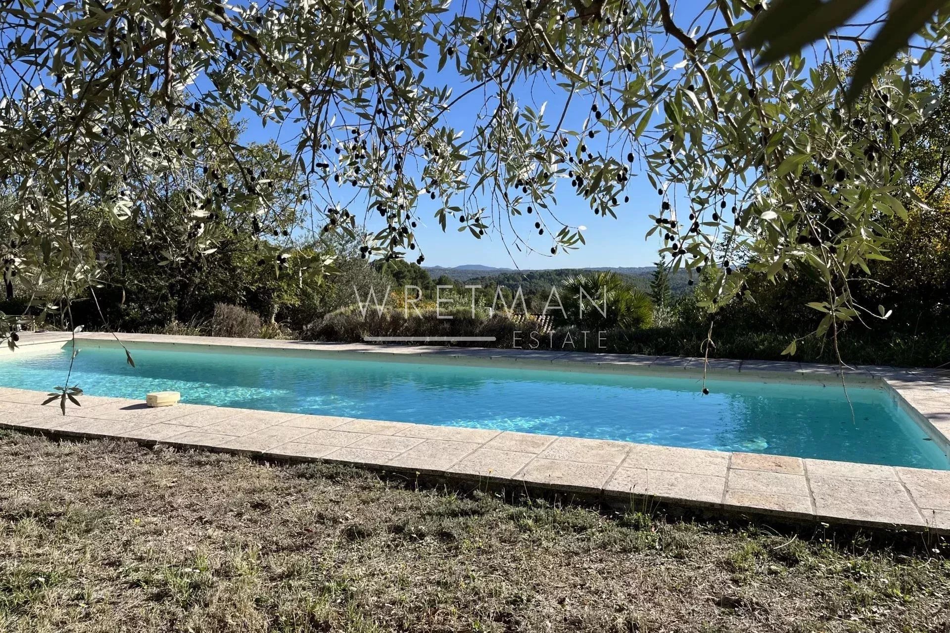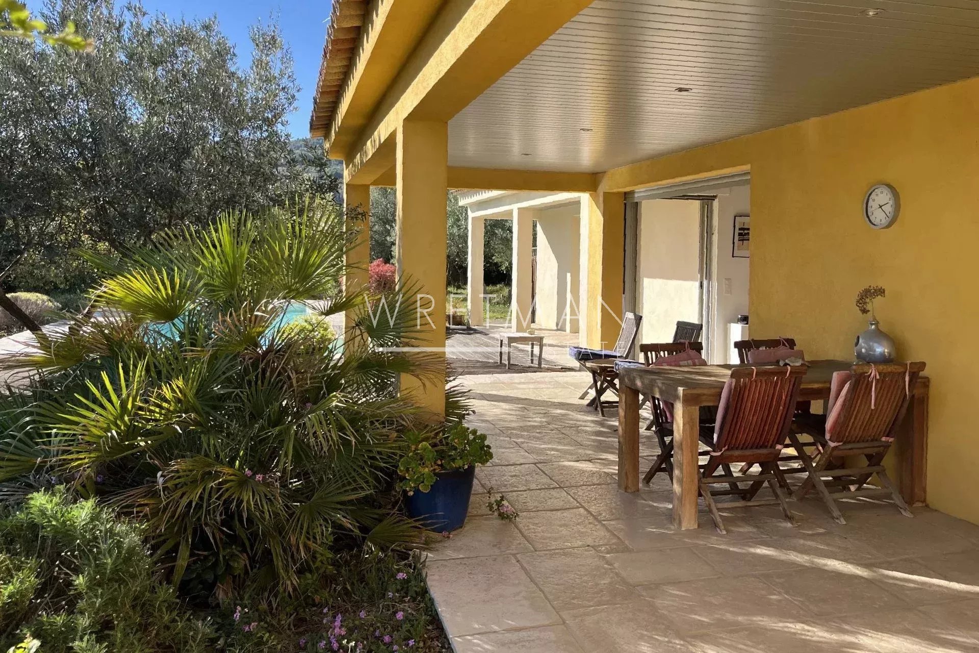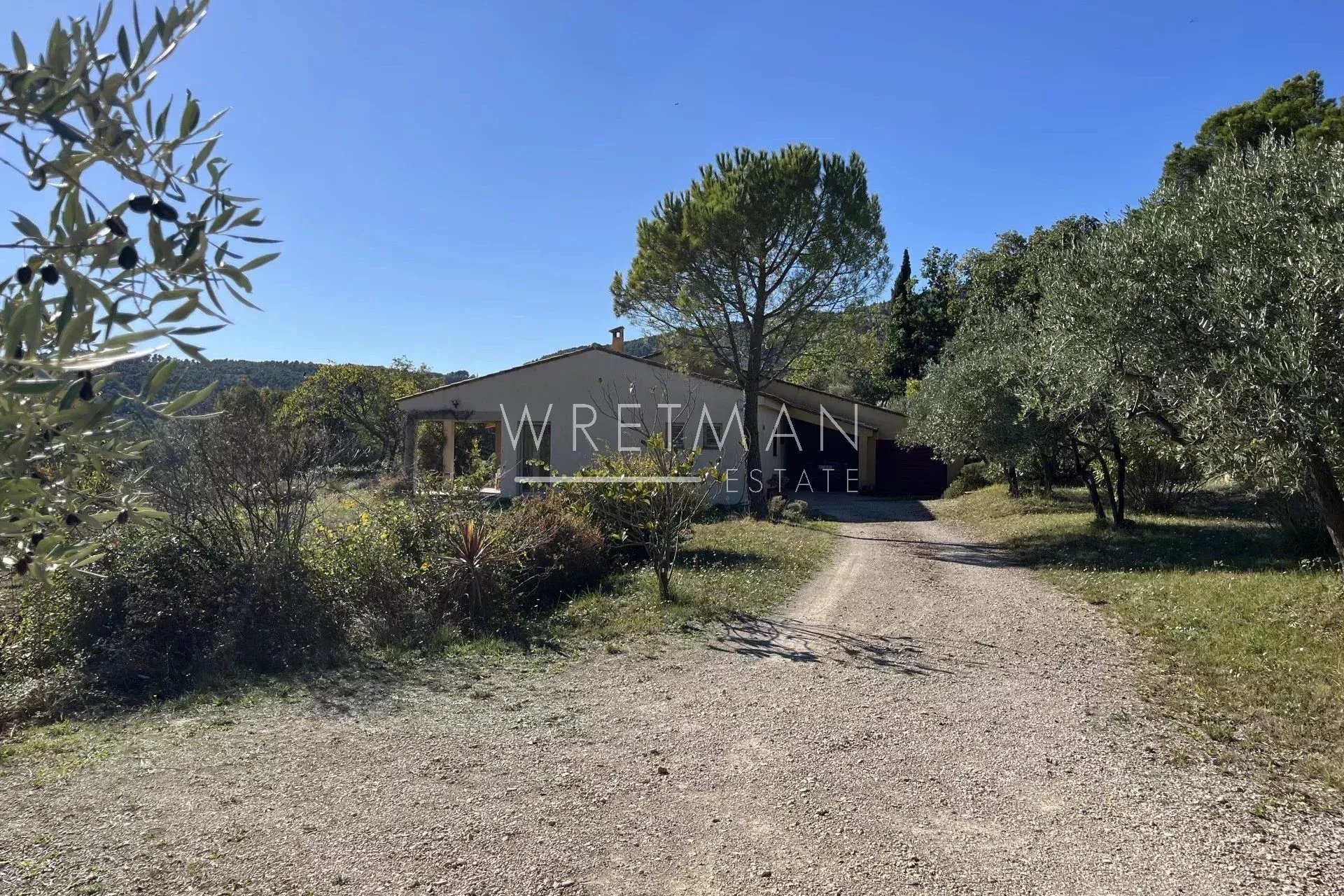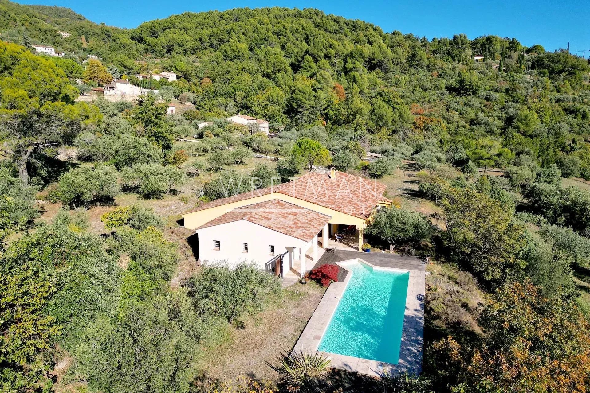At only 5-minute walk from the fantastic old village of Seillans, this beautiful contemporary single-story villa of 150 m² features a 6,400 m² Provençal garden with numerous olive trees. Enjoying absolute peace and quietness, it boasts magnificent views.