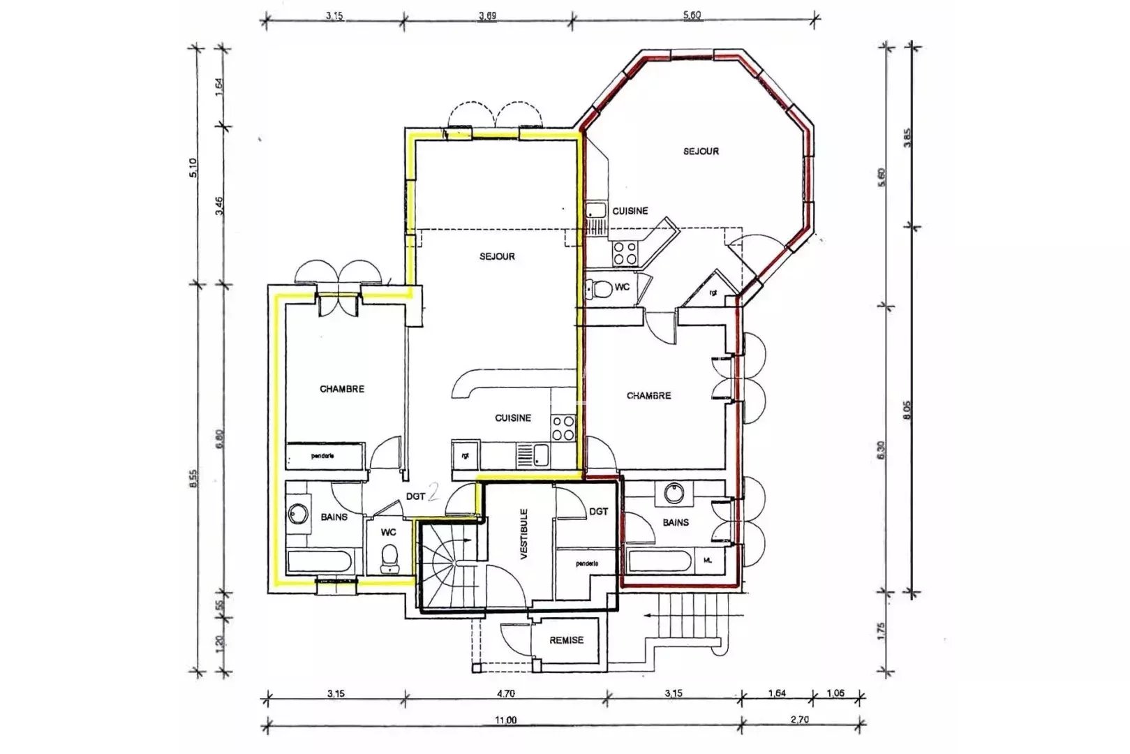 This charming two-story building. with 4 bedrooms. is perfect for a large family. It is a rare find on the market. Currently. the house is divided into 3 apartments: an 80 m² 3-4 room apartment with a 15 m² terrace on the first floor. and two 2-room apartments on the garden level. The beautiful interior staircase connecting the two floors can be restored if the three separate apartments are not needed.