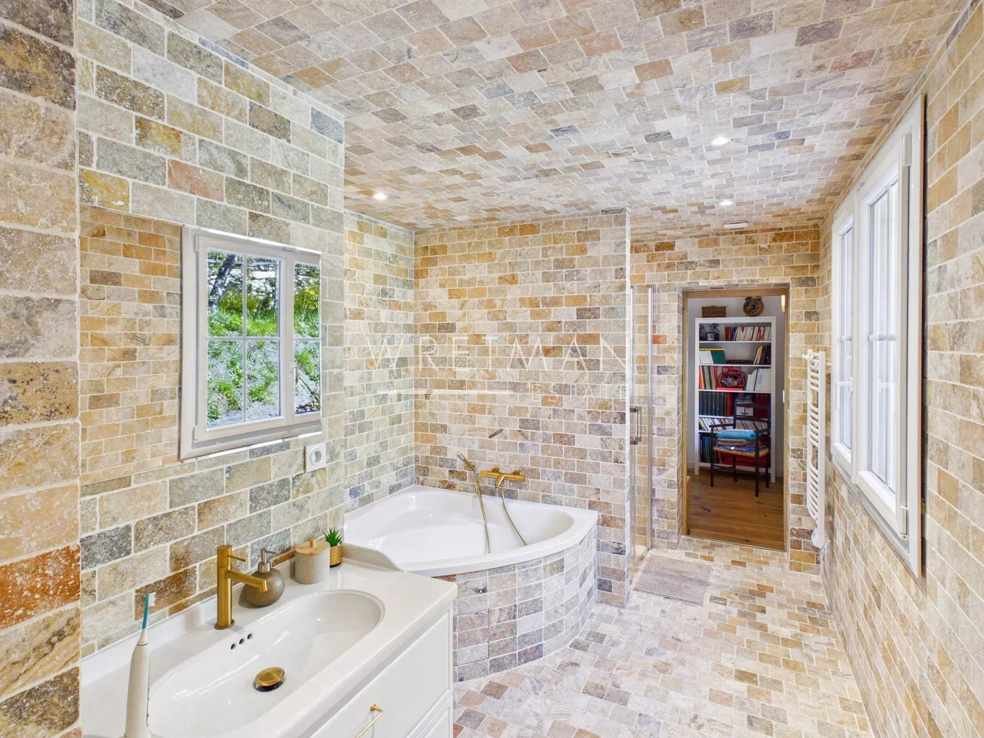 Outside is a lovely gated swimming pool, pool-house with lounging area, a south facing garden with several sunny terraces, a fabulous garage with electric doors and internal access to the house and a double carport. The property is fenced, secure and has electric gates.