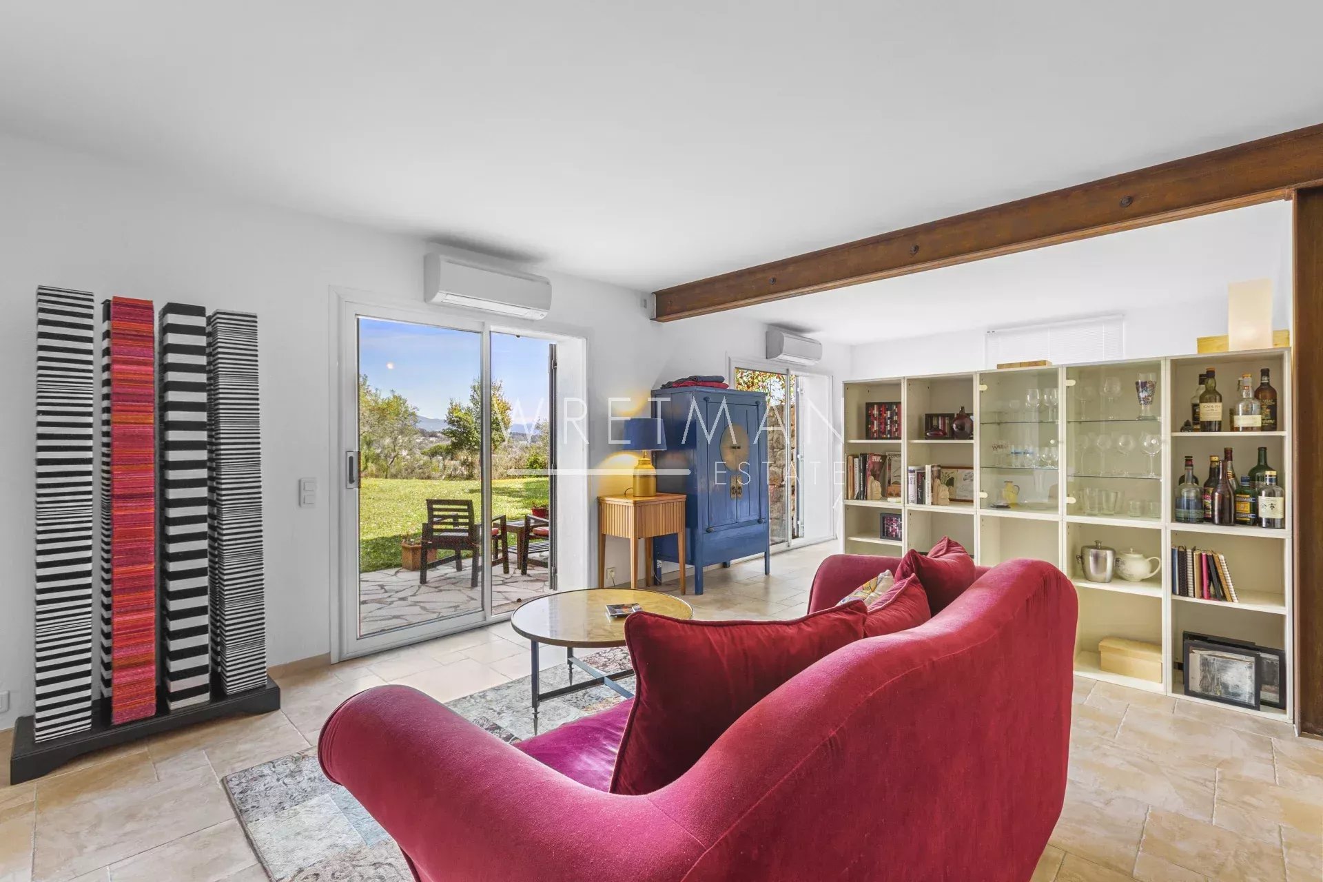 Very well kept house with 2 independent living floors. 4 bedrooms, 1 office, 2 living rooms and 2 kitchens. High ceiling and reversible air con och double glaced windows everywhere. On a big (2100m2) green land with allot of spots/terraces around the house to “hang out” and the pool (5x8m) in the middle. The whole garden has gorgeous view over the green landscape, the mountains, villages and the snow tops. In a closed domaine with 12 houses sharing a gate and a tennis court. Walking distance to commercials and to bus stations. The location is perfect for going to Sophia Antipolis, or to Valbonne village which is the closest village to the house.