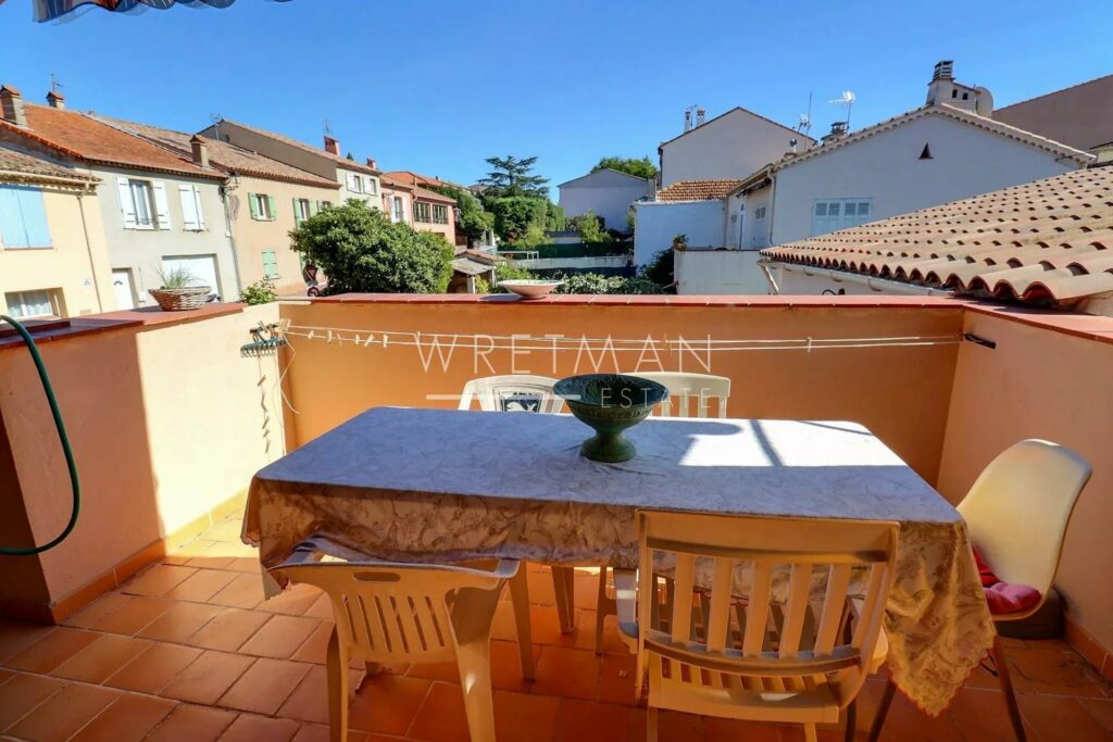This is a rare property in the heart of the lively Provencal village of Roquebrune. The property consists of a large apartment on the first floor of 110 m²: a spacious light salon with high decorated ceiling opens out on a lovely terrace overlooking the garden with swimming pool . It has a separate kitchen, 3 bedrooms and a bathroom.