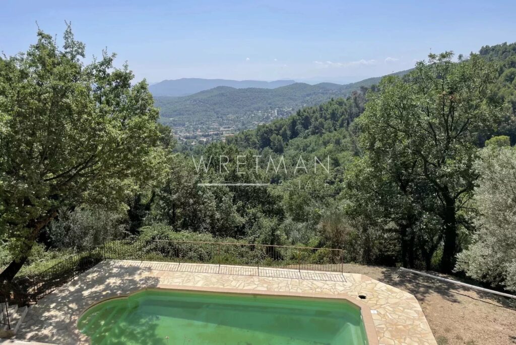 Stunning stone farmhouse located in a peaceful setting with a view of the village of Seillans.