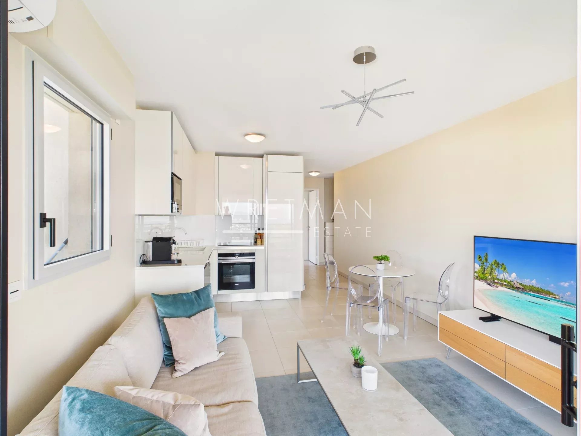 Located on the 3rd floor of a residence with elevator and a communal swimming pool, this charming one-bedroom apartment offers a spacious terrace with breathtaking panoramic views of the sea and surrounding landscape.