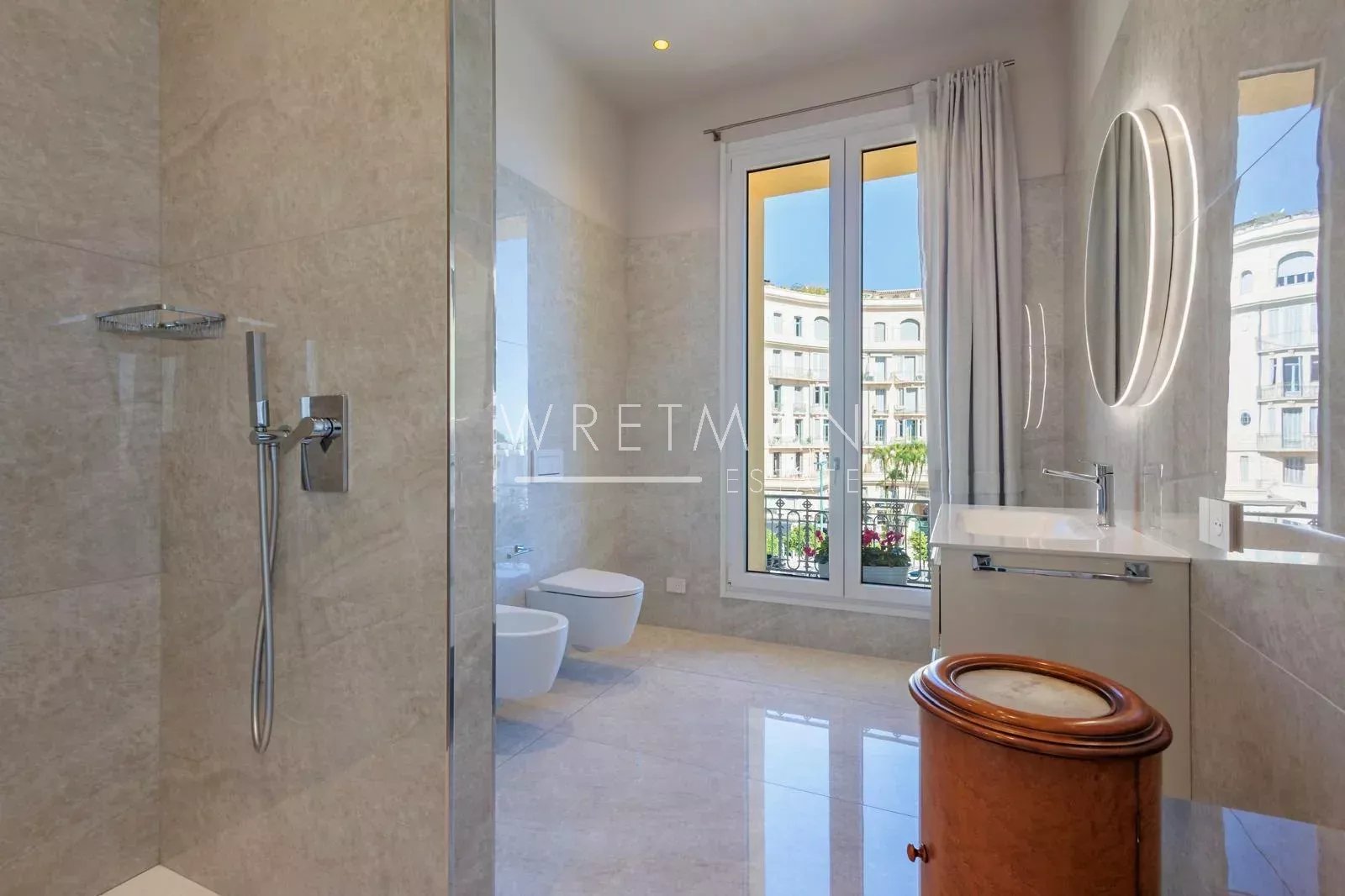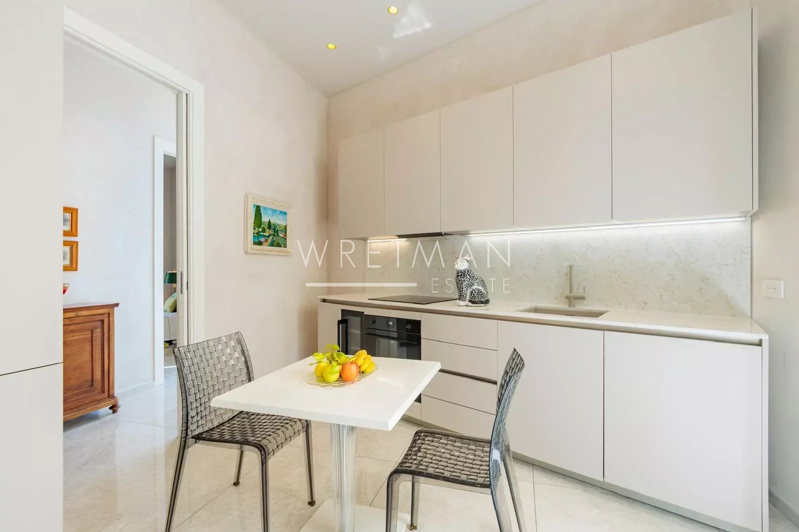 This property with its generous proportions is distinguished by its elegant and refined style with high-end materials and contemporary decor. The spacious living room enjoys an open view towards public gardens and the sea. The fully equipped kitchen opens onto a pleasant terrace overlooking a private garden.