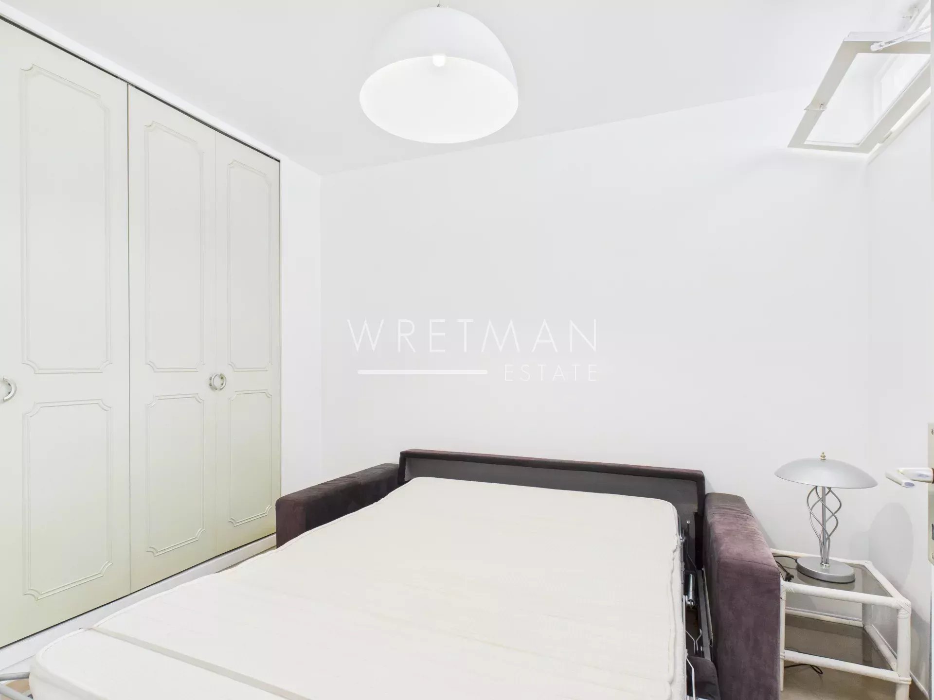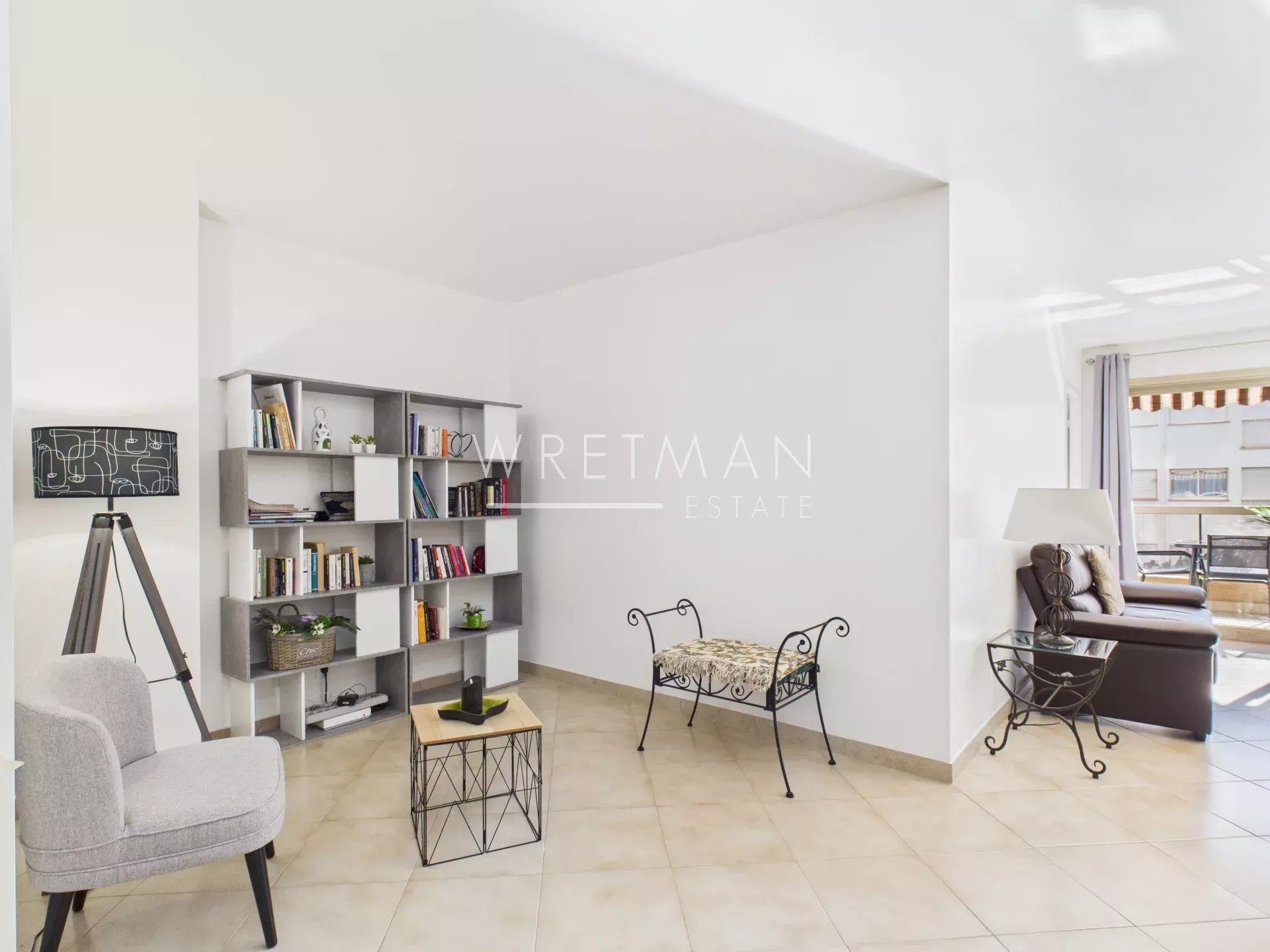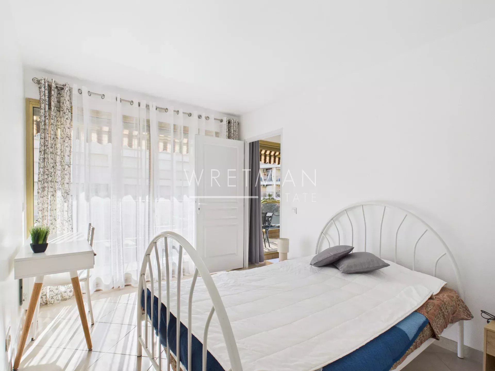 This flat comprises a living room with open kitchen and access to a large south-facing terrace, a spacious master bedroom with built-in cupboards as well as air-conditioning and access to a south-facing terrace, a second spacious bedroom with access to the terrace, and a third bedroom with built-in cupboards (with no window to the outside), a superb shower room with double washbasin, and a separate toilet.