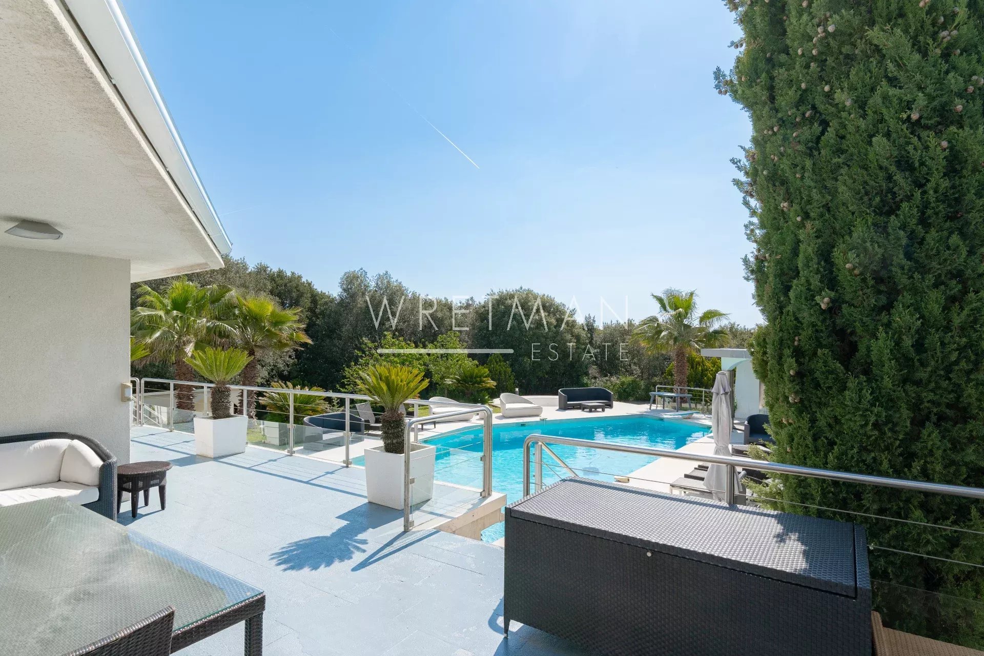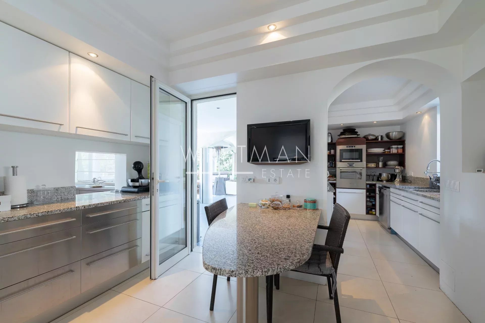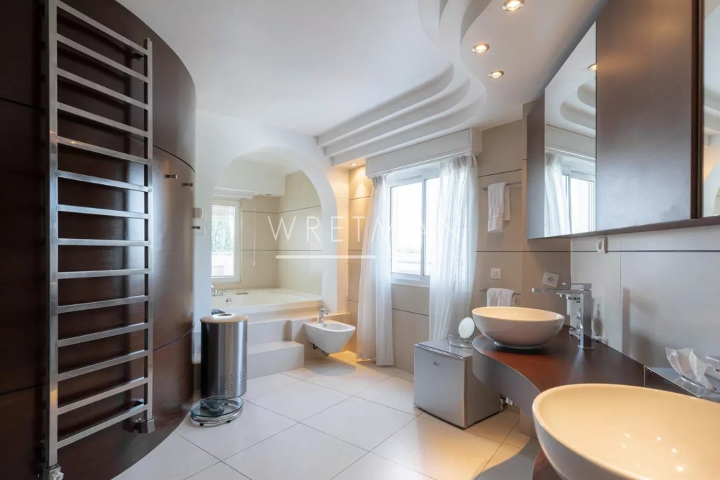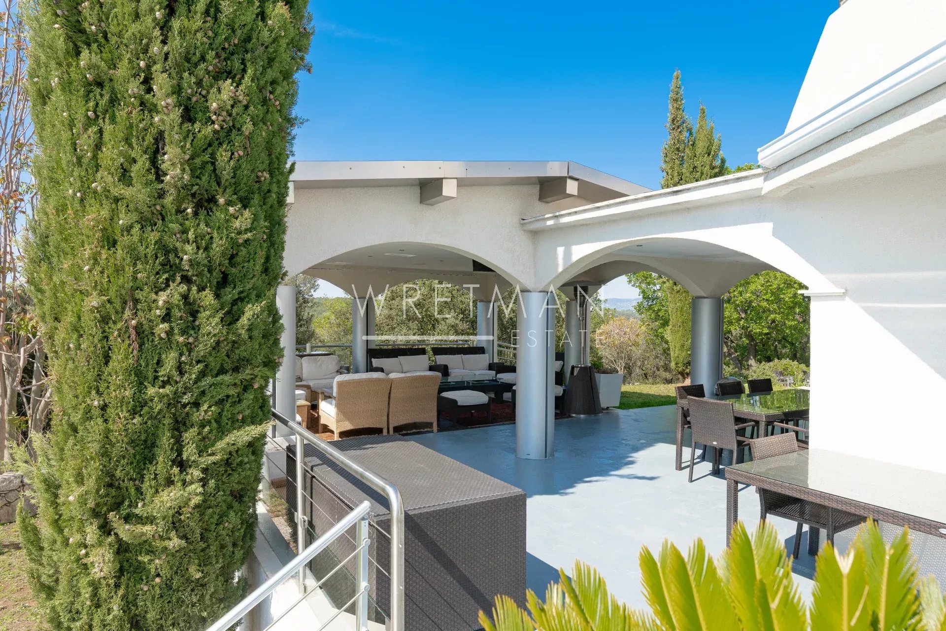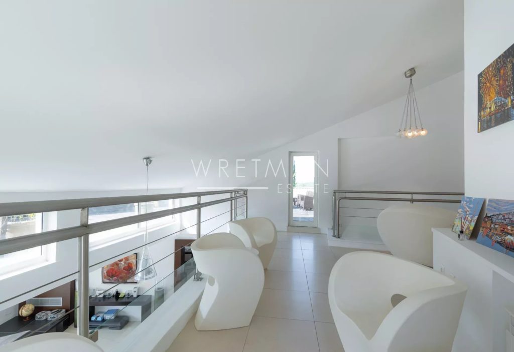 2 km from Valbonne village you find this remarkable house in an elevated position with a panoramic 360 degrees view over sea, hills and mountains. Landscaped parc with of 12000 m2 with tennis court, pool, pool-house, jacuzzi, barbecue area, helipad and a roof terrace. There is also a self contained studio flat and gardians appartement. The house has 630 m2 distributed as following, main level a big reception rooms, kitchen, 4 bedrooms, 3 bathrooms, 1 shower and boudoirs. At mezzanine level, owner’s suite and study. In the basement a home cinema, bars, 2 bedrooms, 2 bathrooms + utilities ( wine cellars, laundry…)