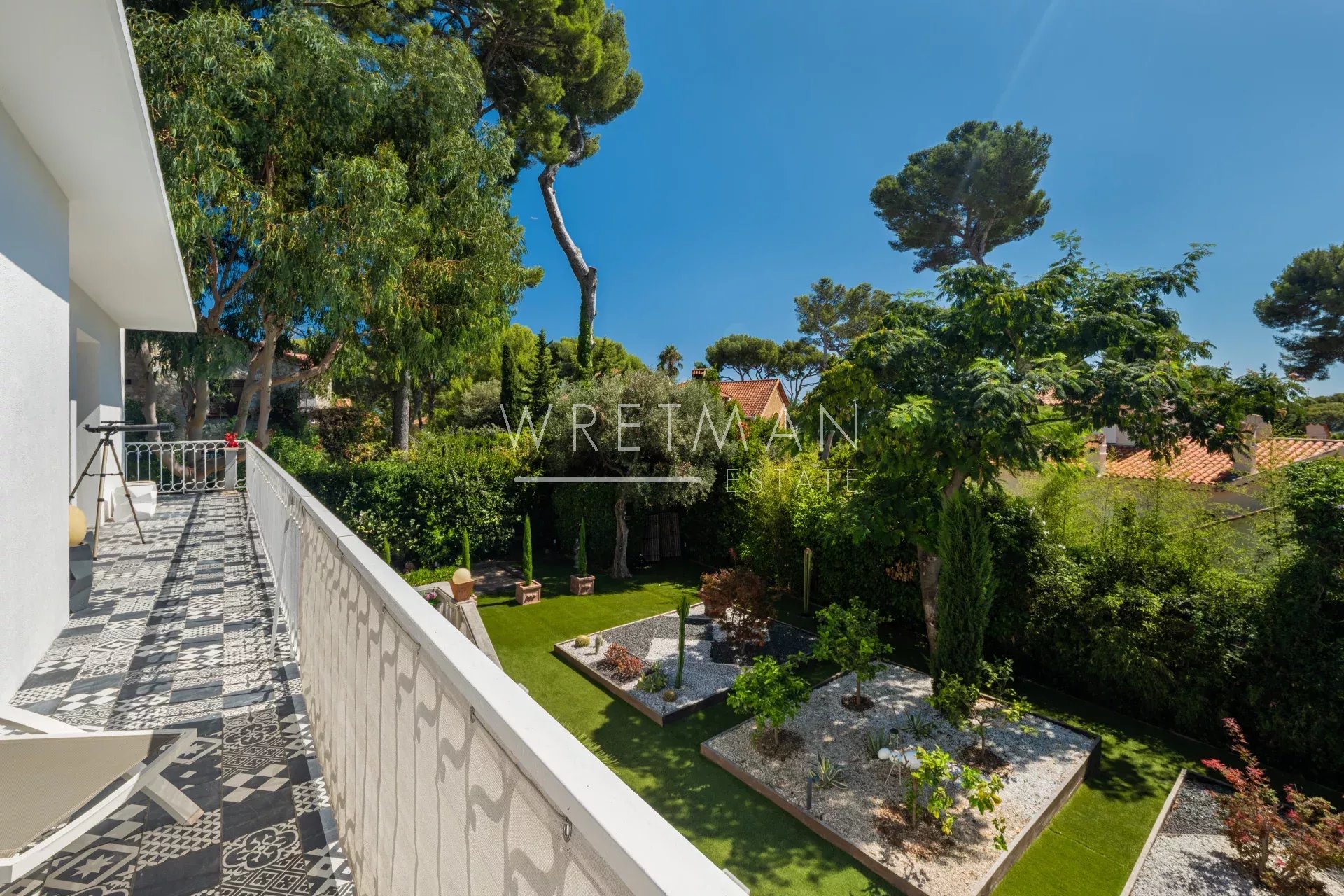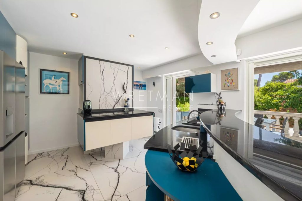 This beautiful villa is located in a quiet area of Cap d’Antibes, about a 10-minute walk from both the beaches of Antibes and La Garoupe Bay.