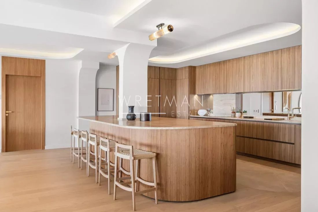 With a surface area of 315 m², the villa offers a vast living area comprising a large reception room, a dining area and an elegant open-plan kitchen with wooden features. The sumptuous master suite has its own private bathroom. The whole space opens onto a first terrace offering breathtaking views.
