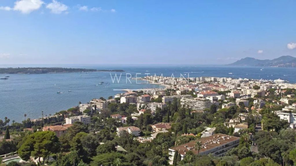 Nestled within 2 hectares of landscaped grounds, this exceptional property, completely renovated by a renowned architect, offers spectacular panoramic views of the Lérins Islands and Palm Beach.