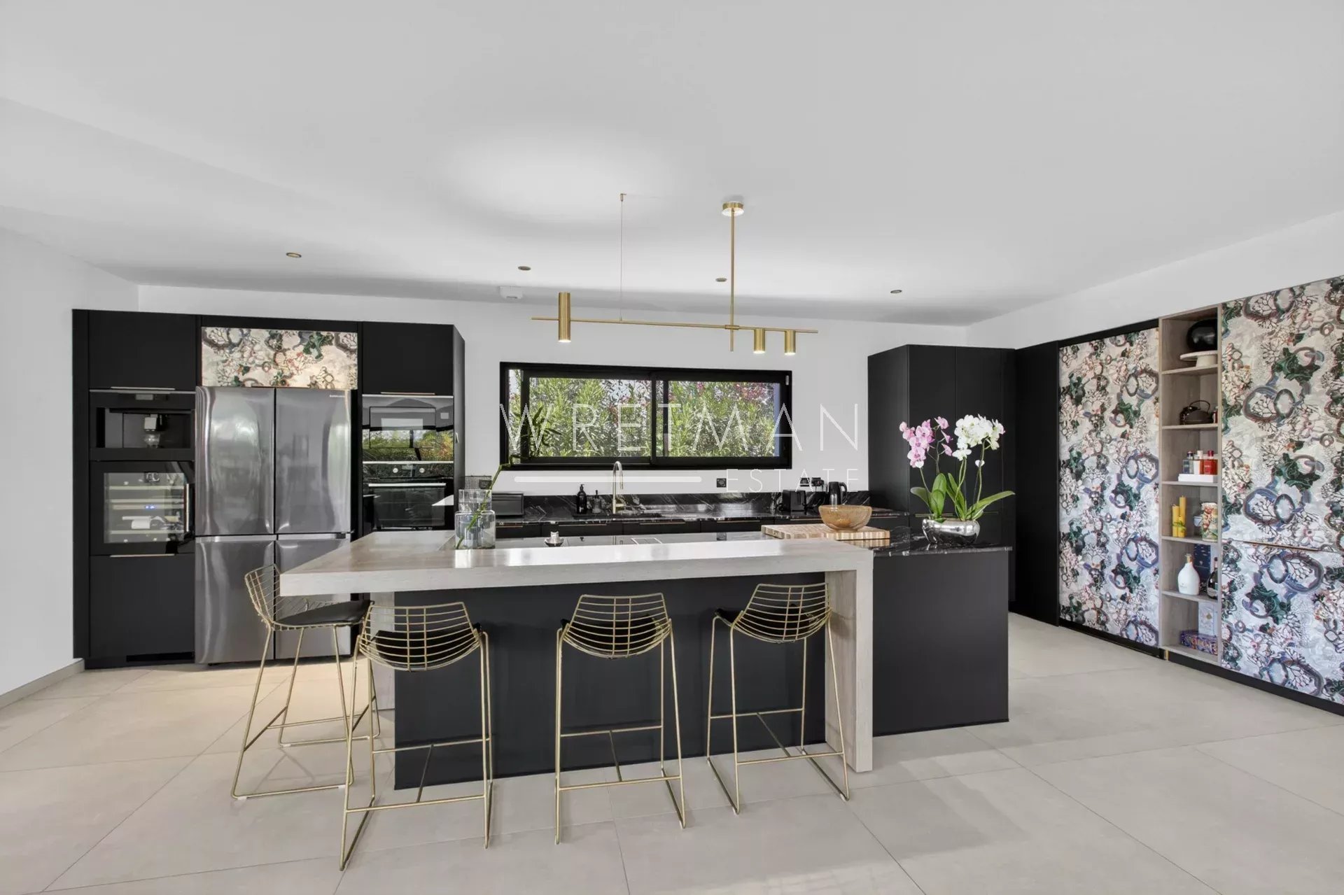 The night area comprises four suites, each with its own shower room or bathroom, including two with walk-in wardrobes, as well as numerous custom-built storage solutions.