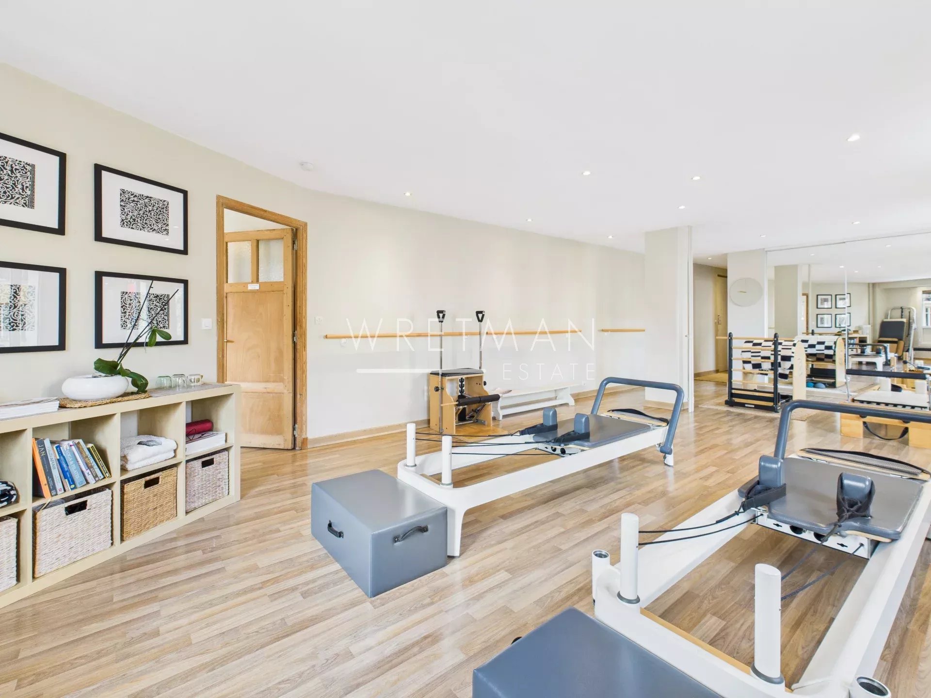 Leiligheten brukes for tiden som et pilatesstudio og fungerer utmerket for aktiviteter som studio, resepsjon eller kontor. Samtidig er det viktig å påpeke at den også kan brukes som en klassisk bolig.