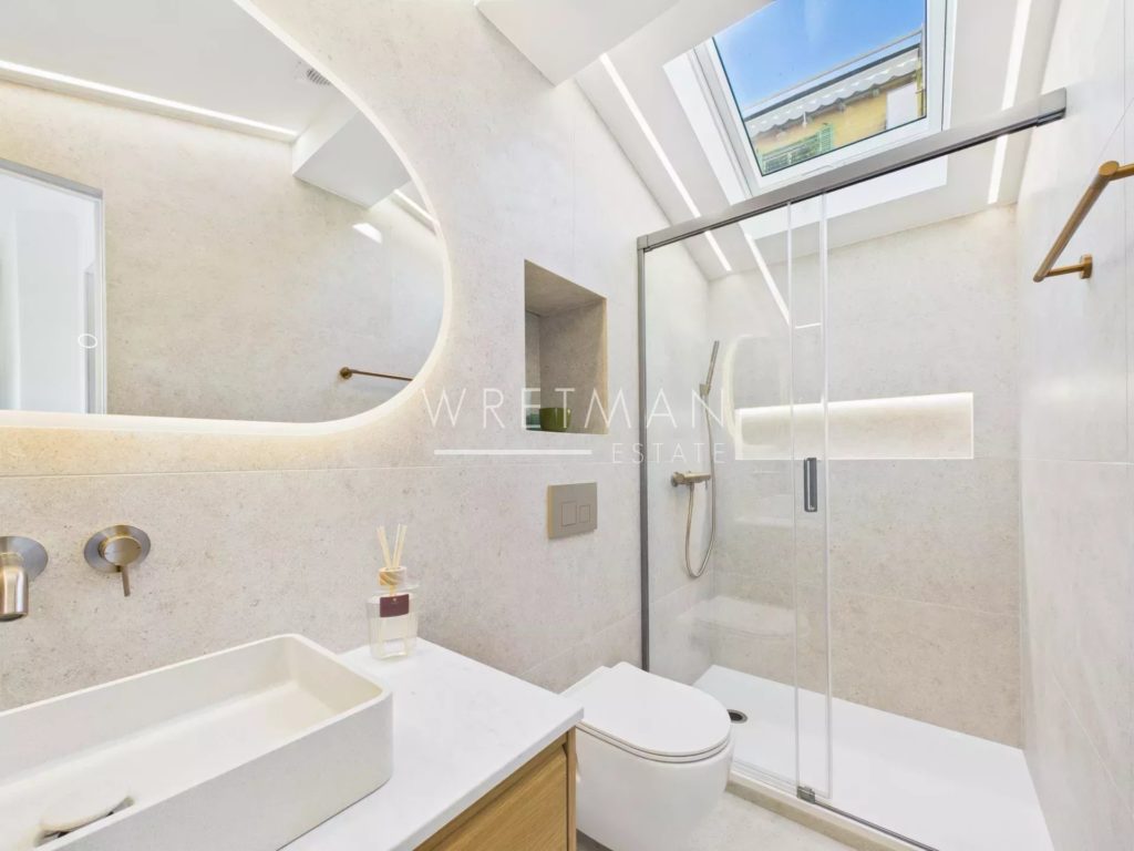 I 1. etasje, rett foran havnen og bare noen meter fra Sablettes-stranden og gågaten, i et tradisjonelt byhus, finner du denne flotte 2-roms duplexleiligheten med nydelig utsikt over havet og den gamle havnen.