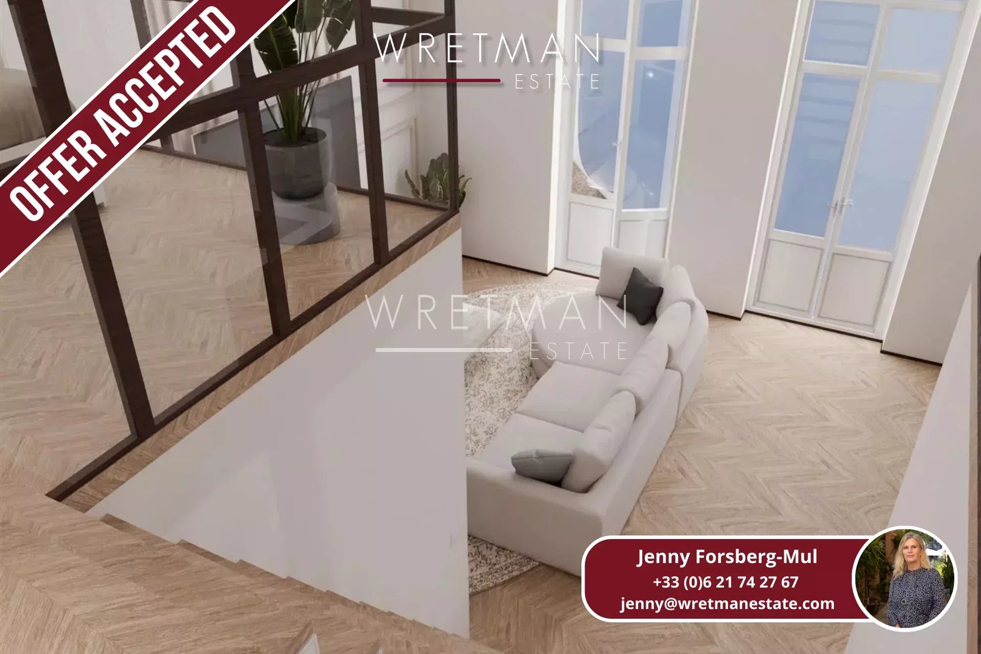 Den er totalrenovert (renoveringen ble fullført i januar 2026) og har et lyst interiør med romslige rom og høye tak, som kombinerer eleganse, modernitet og Belle Époque-sjarm, med raffinerte parkettgulv og høykvalitets finish.