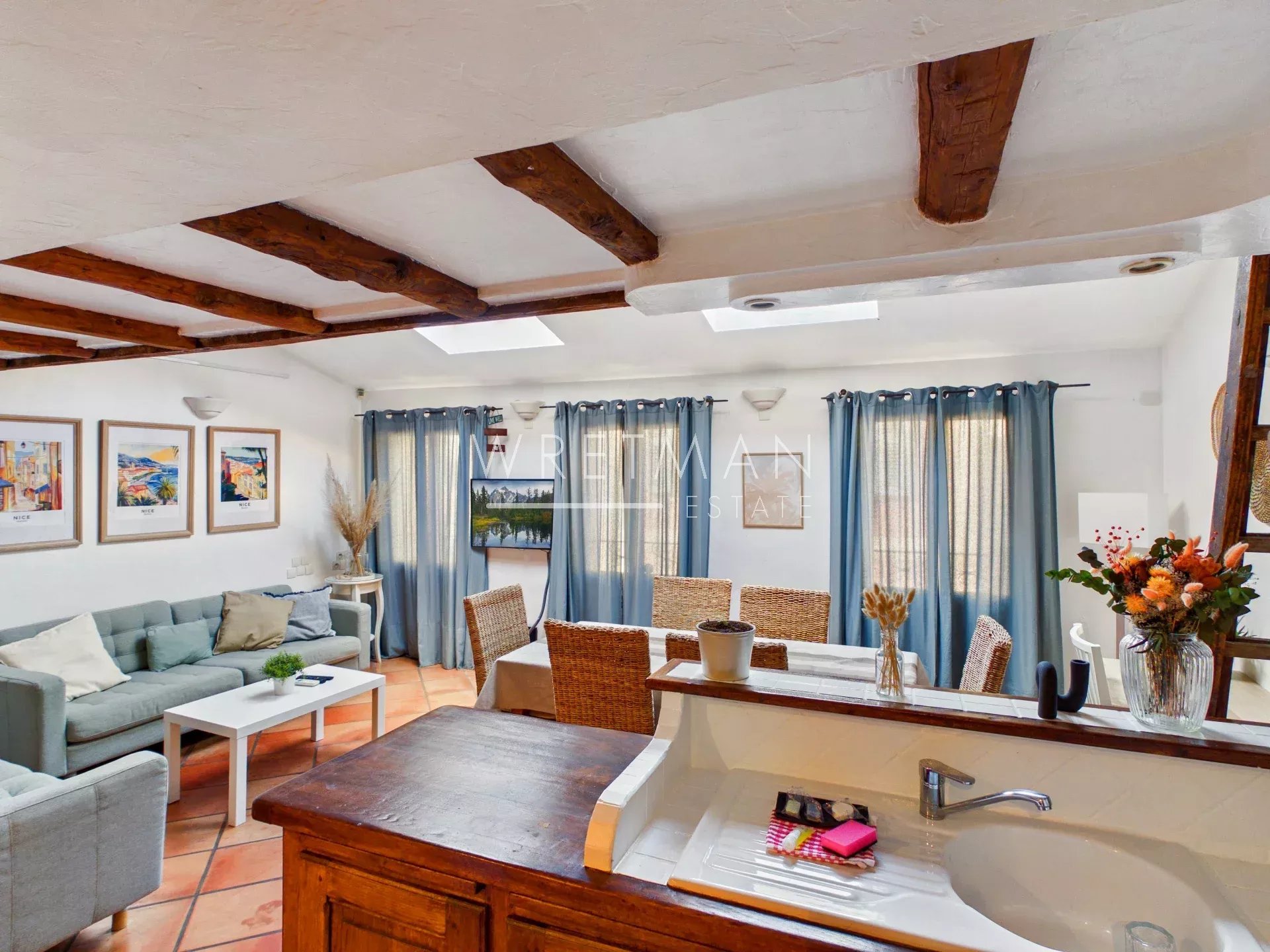 Denne romslige fireromsleiligheten ligger midt i sjarmerende Vieux Nice, omgitt av små lokale butikker, utmerkede restauranter og bare noen få minutters gange fra stranden. Den berømte Cours Saleya og det livlige blomstermarkedet ligger kun en kort spasertur unna.