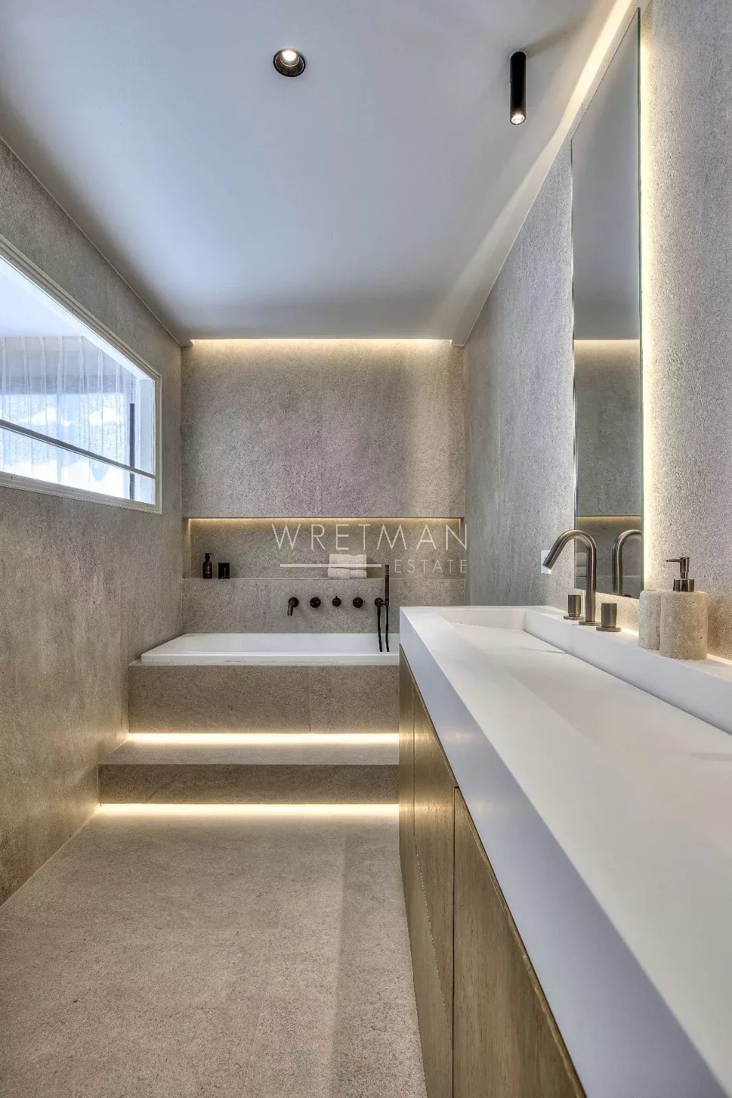 I en grønn oase midt på halvøya Saint-Jean-Cap-Ferrat, kun få skritt fra havnen, strendene og restaurantene, finner du denne flotte 4-roms duplex-leiligheten som kombinerer eleganse, komfort og middelhavslivsstil.