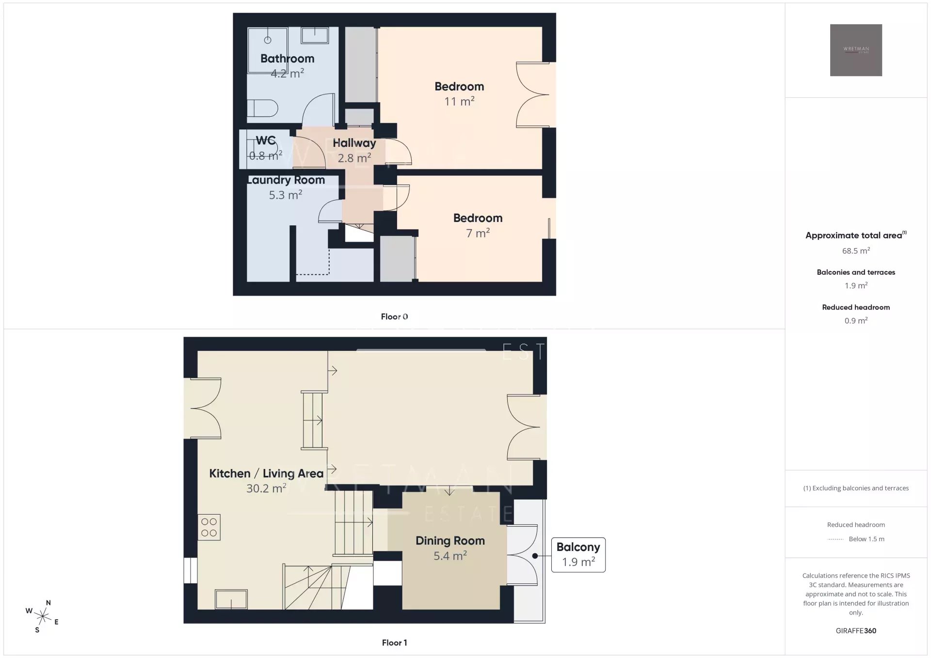 Boligen har et bruksareal på 67 m² med en smart planløsning. På inngangsplanet ønskes du velkommen inn i en lys stue som har utgang til en balkong med vidstrakt havutsikt. Fra samme balkong er det også tilgang til en delvis adskilt spiseplass. På dette nivået finnes også et moderne og fullt utstyrt kjøkken.