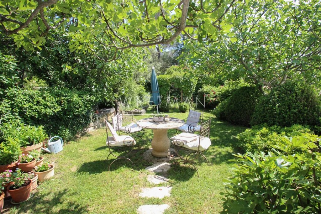 Stor hage på ca 4,5 mål med gamle oliventrær, pool, pool house, grill og boule-bane.