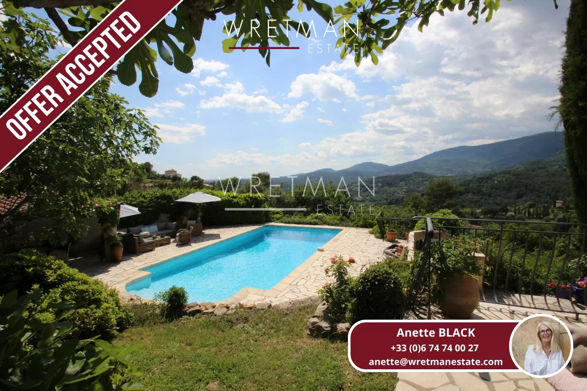OFFER ACCEPTED – Sjarmerende eiendom med vakker utsikt. Den ligger i gangavstand til landsbyen Fayence.
