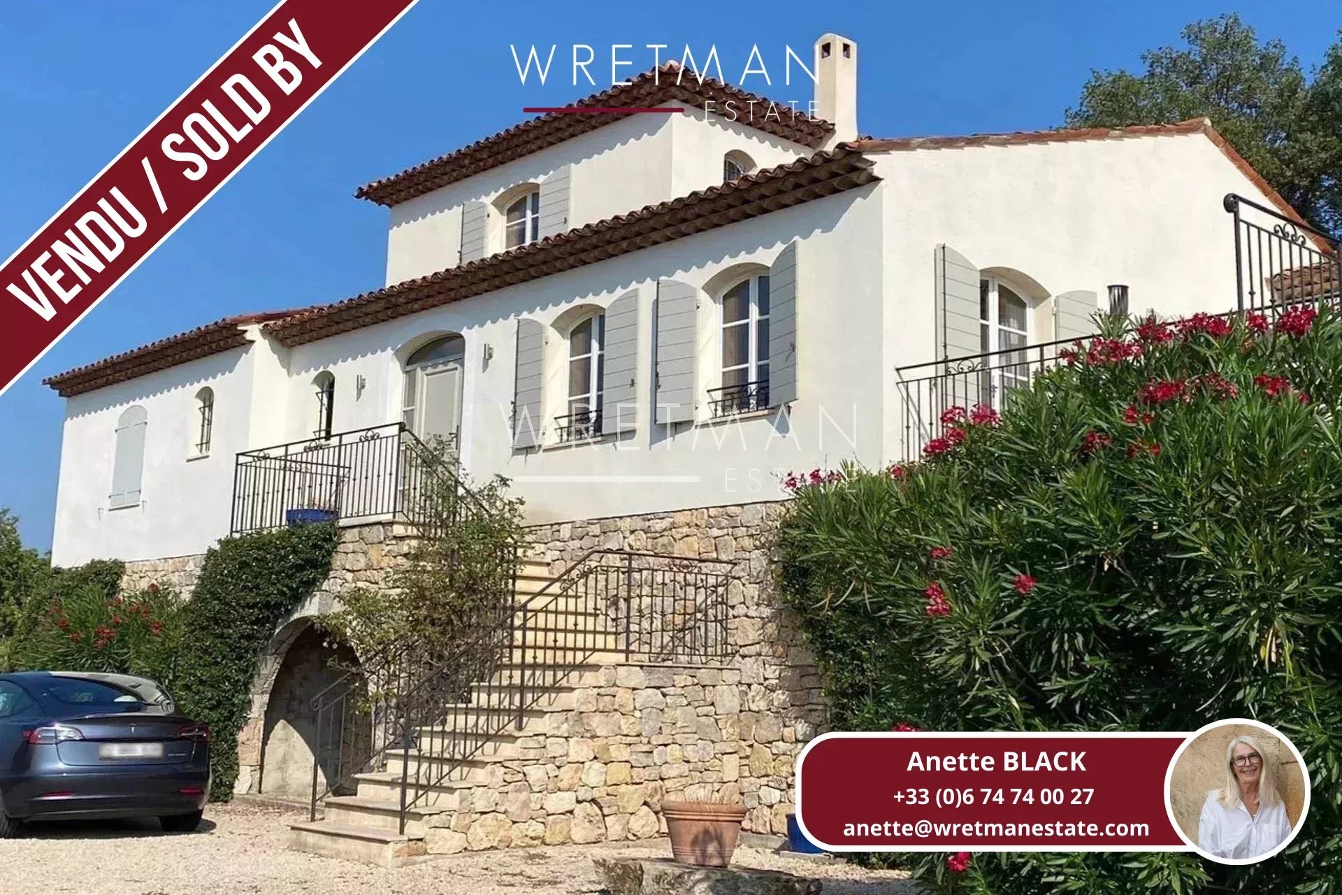 SOLD BY WRETMAN ESTATE – EKSKLUSIVT – Til fots fra sentrum av landsbyen Fayence, oppdag denne praktfulle villaen på 200 m² med panoramautsikt over de omkringliggende åsene.