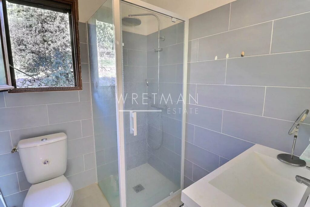UNDER ACCEPTED OFFER – In a very attractive location on the outskirts of the village, in between the olive groves, you will find this villa in its garden of 1088 m² with an amazing view. Entering via the hall, you come into a spacious and light living room with half open kitchen. Both the livingroom and the kitchen have doors opening out on the large south facing terrace from where you have a spectacular over 180 degree view over the countryside.
