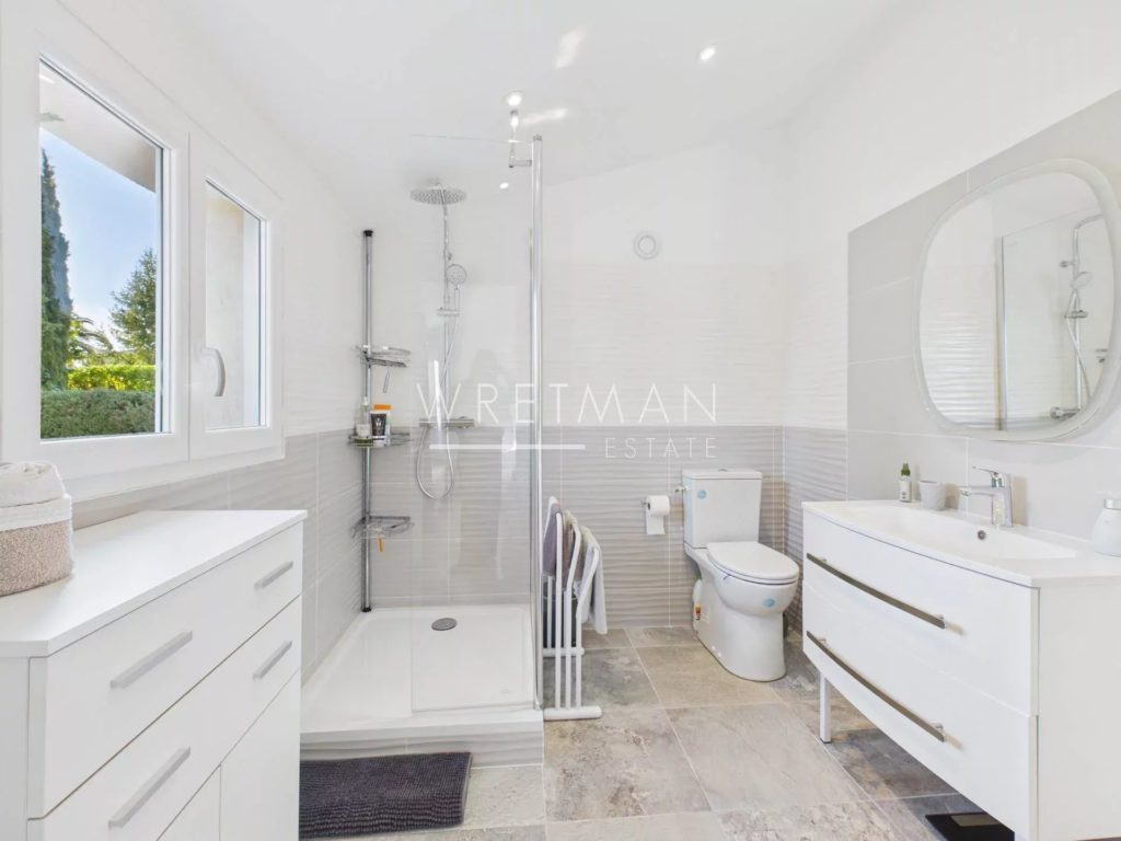 Den velholdte hagen på 2400 m² har et nydelig bassengområde (12x5m) med bassenghus og mange overbygde terrasser, ideelt for å nyte det fine været.