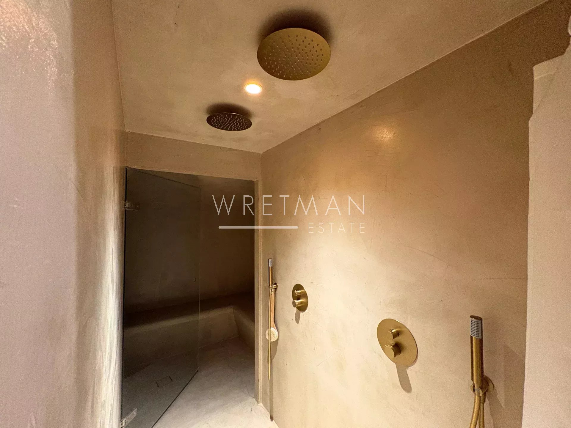On the second floor, you will find another bedroom with its own shower room, along with the approximately 60 m² master suite. This private retreat includes a study area, a large walk-in dressing room, a sleeping area, and a shower room equipped with a hammam.