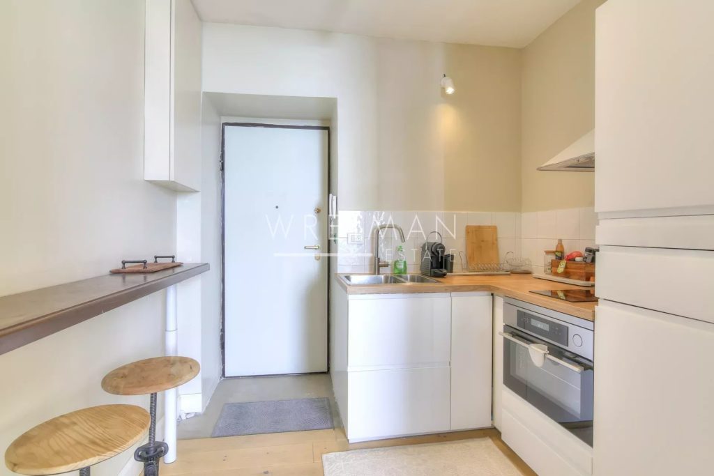Mycket fin etta om 25 kvm i boyta med högt i tak och panoramautsikt över havet. Belägen på första våningen i en charmig byggnad på havsfronten i Menton, mittemot den berömda Sablettes stranden och ett stenkast ifrån butiker och restauranger.