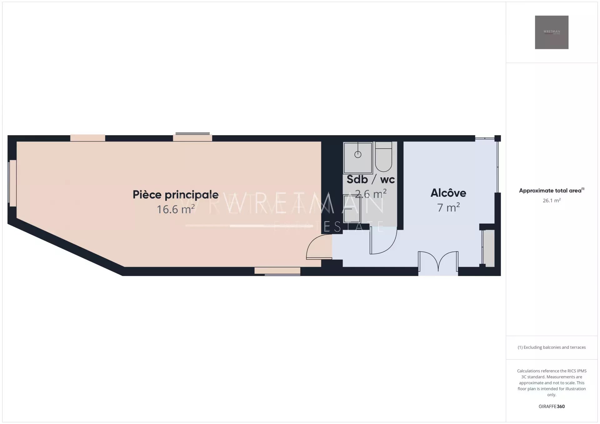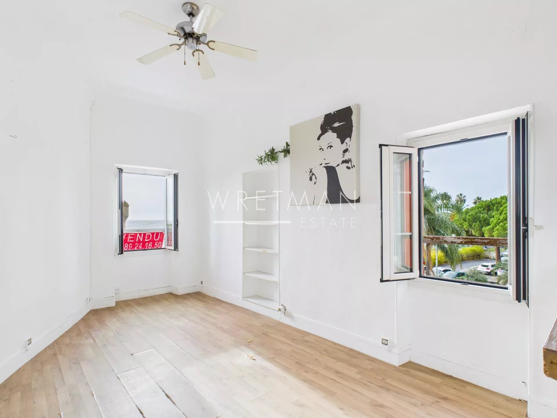 På översta våningen utan hiss, mittemot Bastionen, Sablettes-stranden och den gamla hamnen, hittar du denna enrummare på 26 kvm.