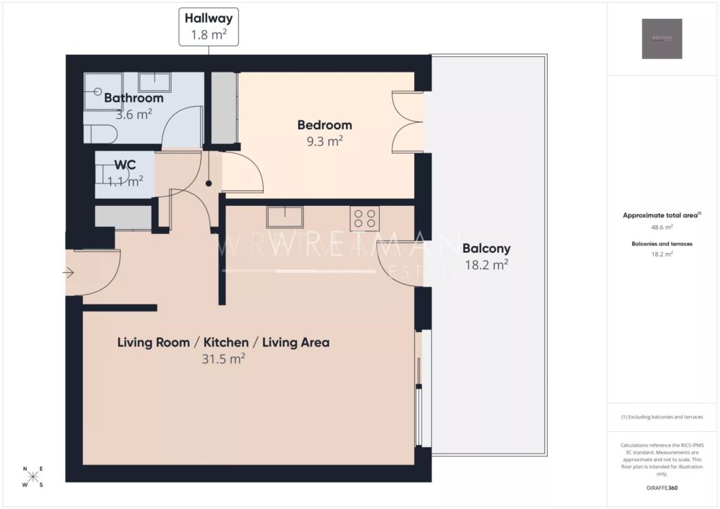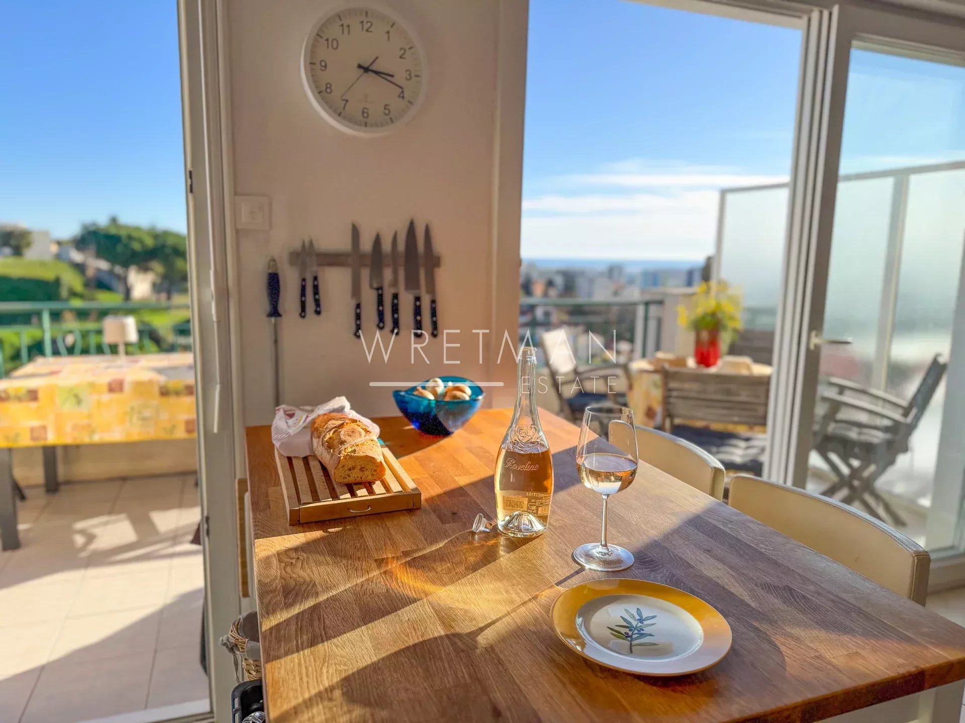 Denna tvårumslägenhet är belägen på tredje och översta våningen och består av ett ljust och soligt vardagsrum med öppen kökslösning, med utgång till en rymlig sydvänd terrass med fri utsikt över havet och bergen. Lägenheten har även ett rymligt sovrum med eget badrum och toalett.