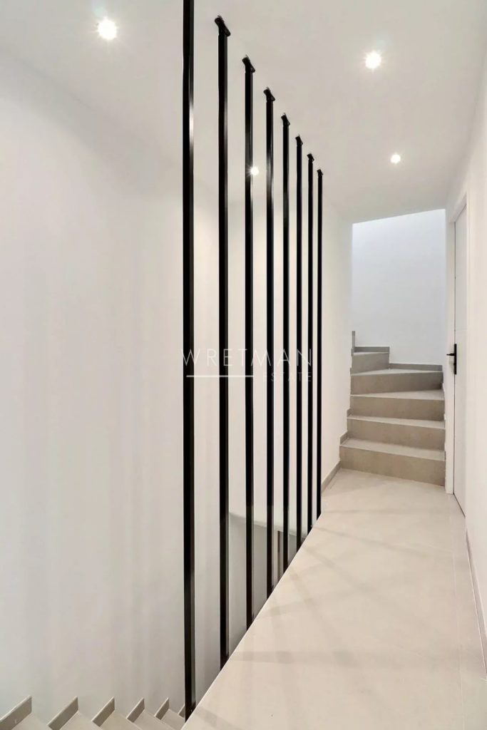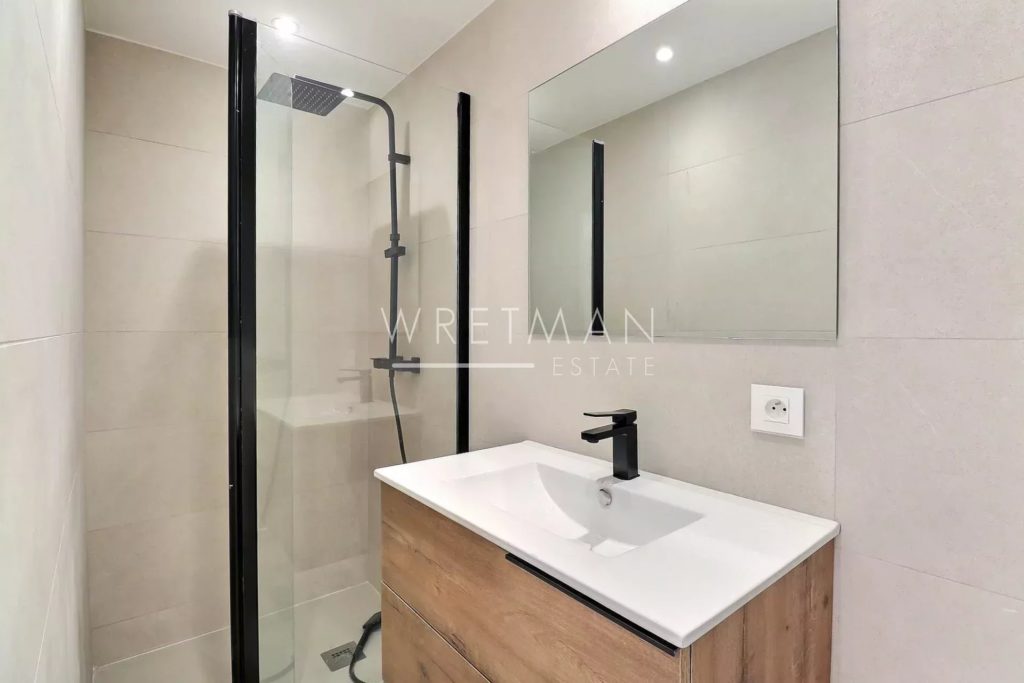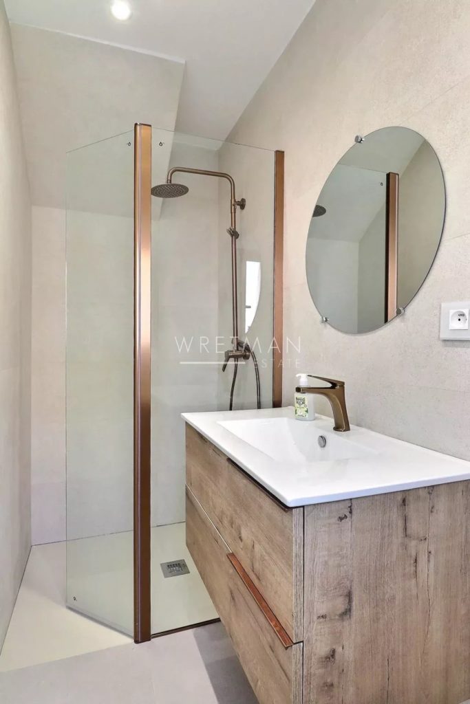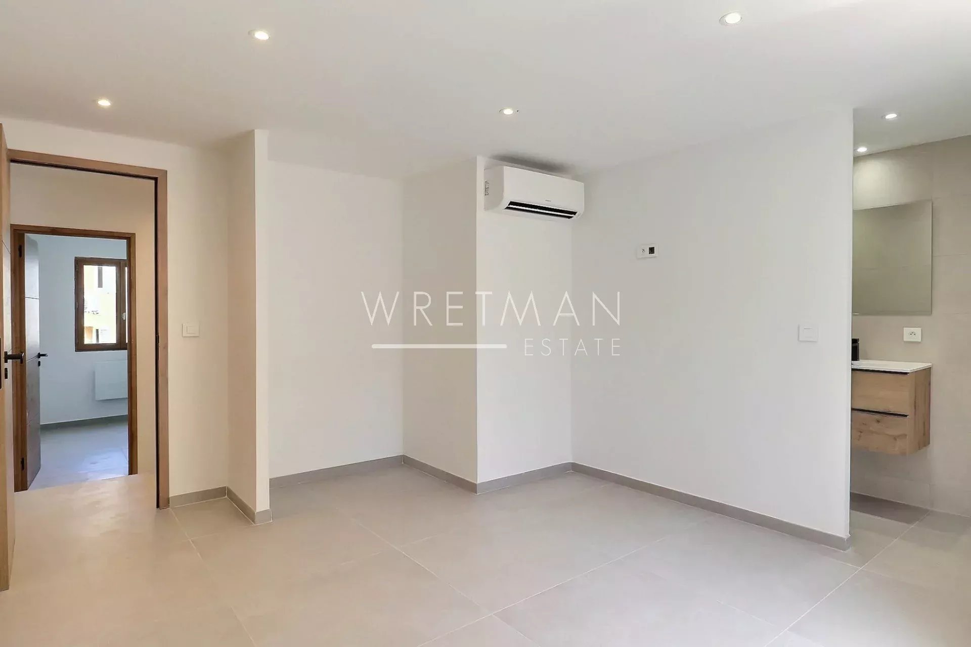 Lägenheten är ljus och vetter mot söder, med två rymliga sovrum – båda med eget duschrum – varav det ena även har en liten klädkammare. Separat gästtoalett. Vardagsrummet öppnar upp mot ett inrett kök som fortfarande kan anpassas efter köparens önskemål. En charmig takterrass (terrasse tropézienne) fulländar bostaden och bjuder på fri utsikt över byns takåsar och de omgivande kullarna. Fastigheten har fast internetuppkoppling i varje rum, vilket gör den idealisk för distansarbete. Flera allmänna parkeringsplatser finns inom kort gångavstånd.