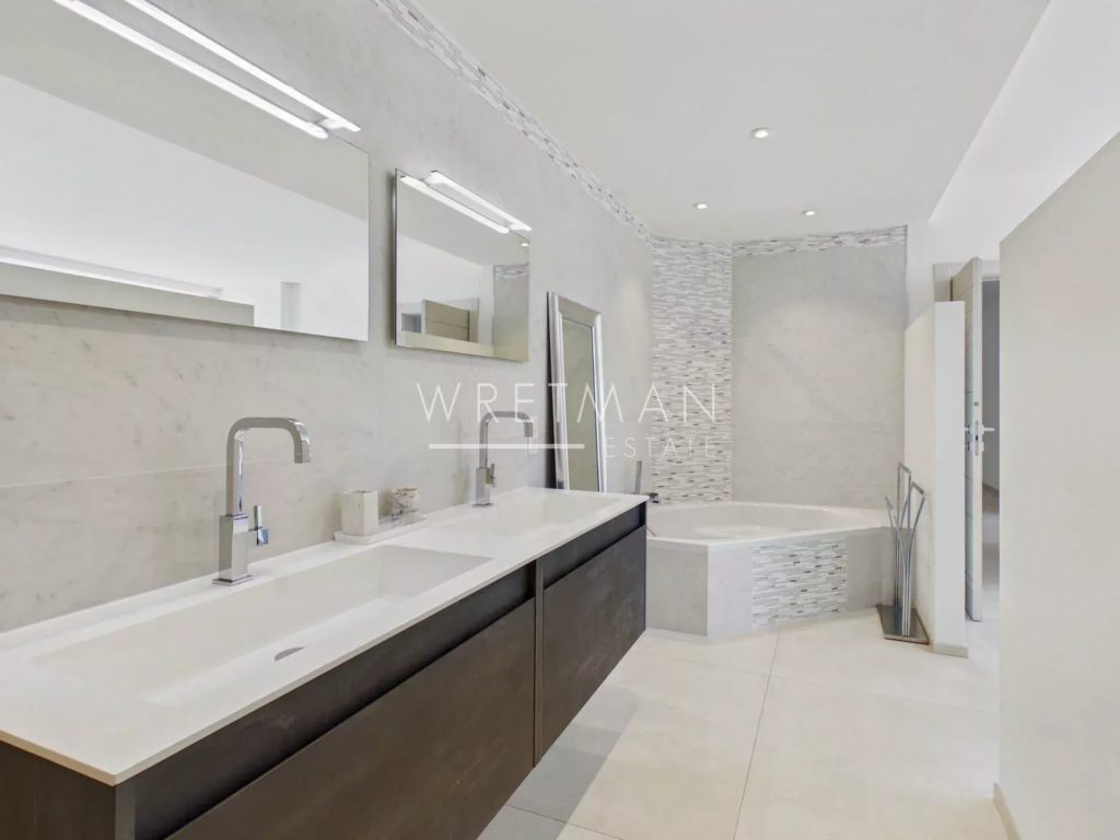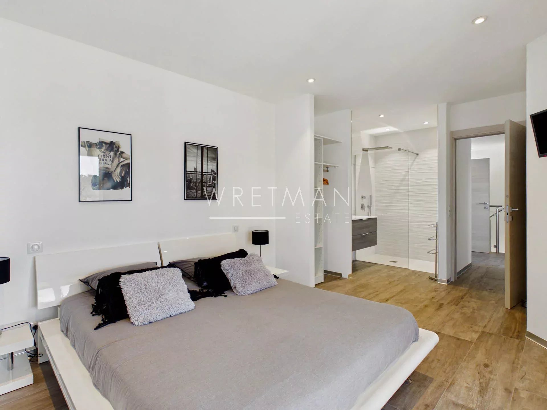 Bottenvåningen har ett stort vardagsrum på 80 m² med ett mycket ljust vardagsrum som är öppet mot ett utrustat kök. Sovdelen har 4 sviter, var och en med sitt badrum.