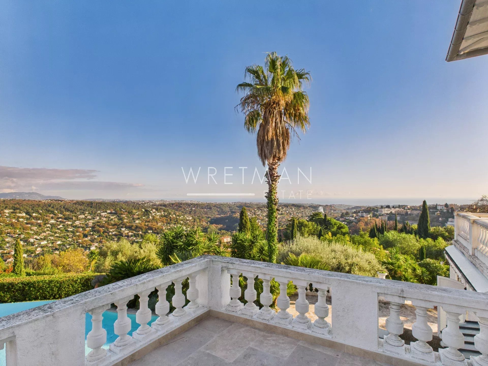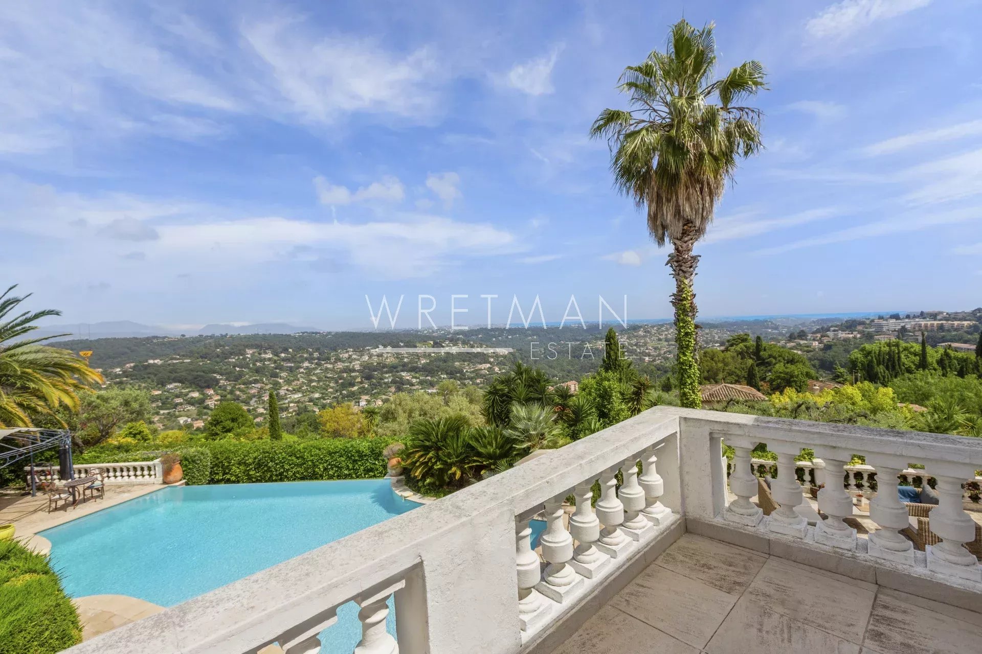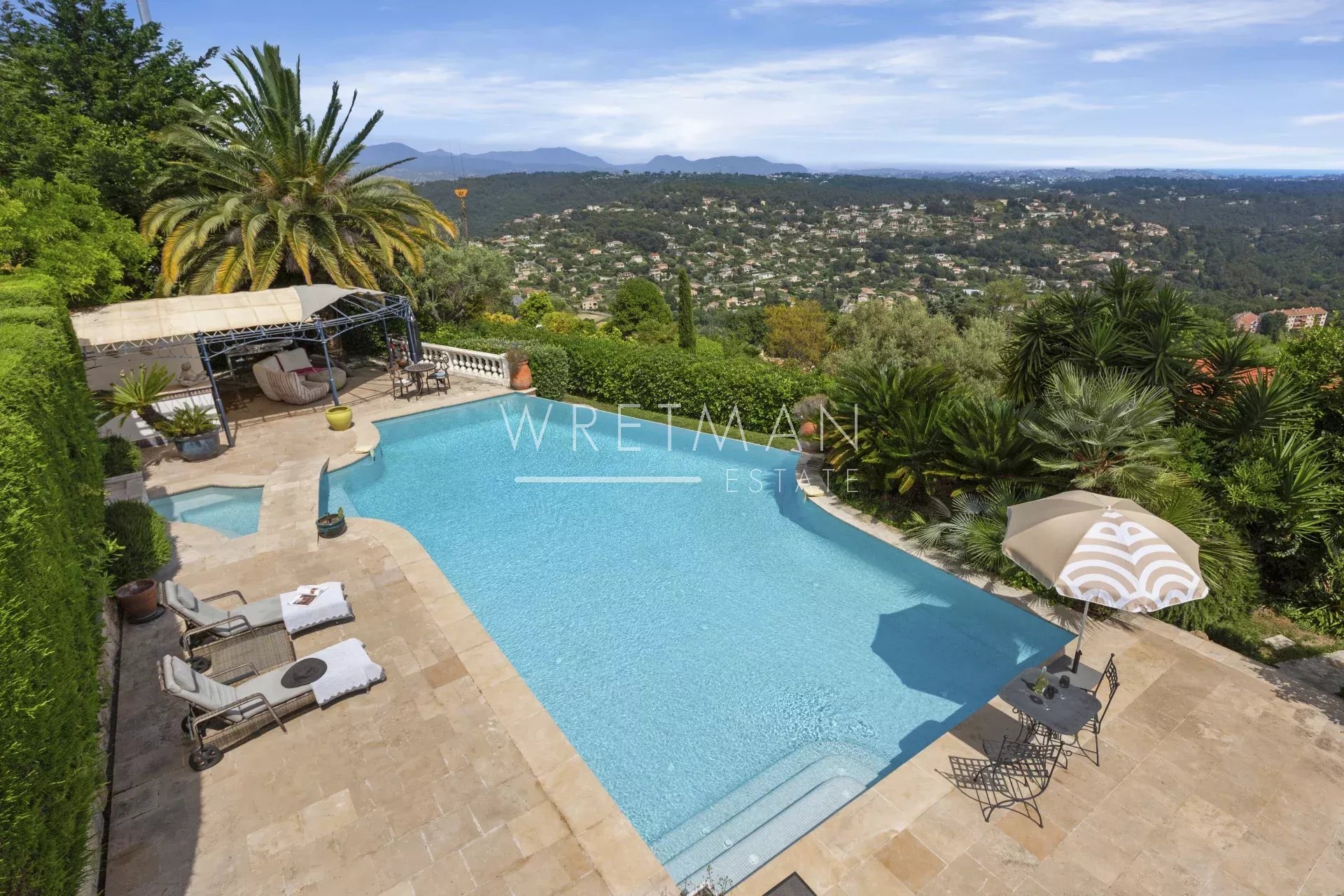 Bara ett stenkast från byn Vence ligger denna eleganta 240 m² stora stenvilla med 4 sovrum, panoramautsikt över havet, 1 500 m² anlagd trädgård och uppvärmd pool. En sällsynt egendom som kombinerar autentisk charm och moderna bekvämligheter.