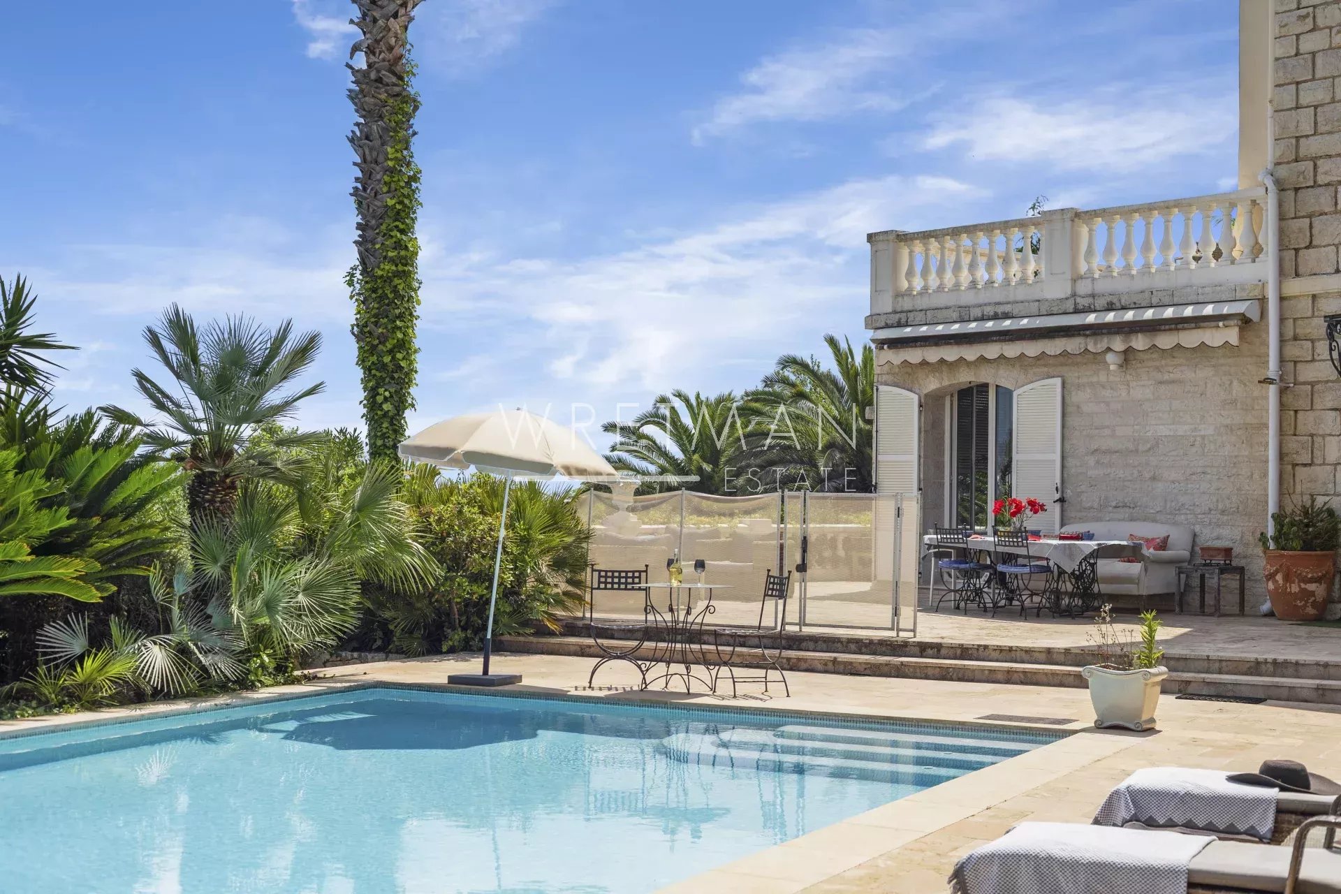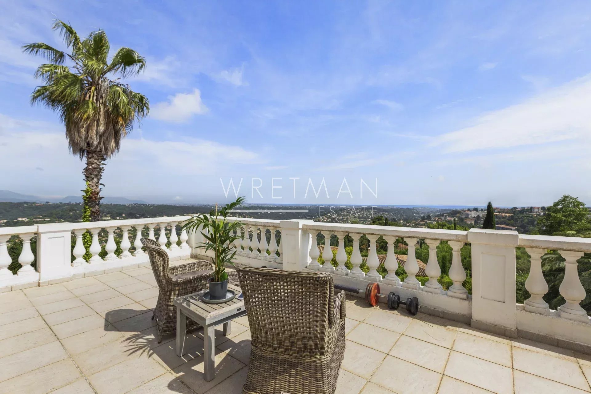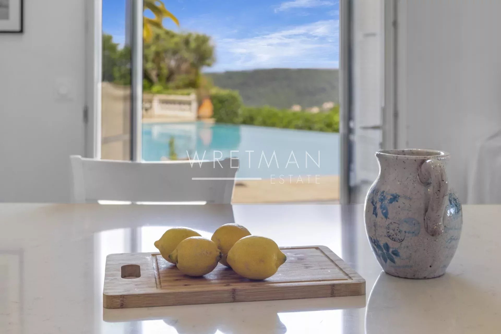 Bara ett stenkast från byn Vence ligger denna eleganta 240 m² stora stenvilla med 4 sovrum, panoramautsikt över havet, 1 500 m² anlagd trädgård och uppvärmd pool. En sällsynt egendom som kombinerar autentisk charm och moderna bekvämligheter.