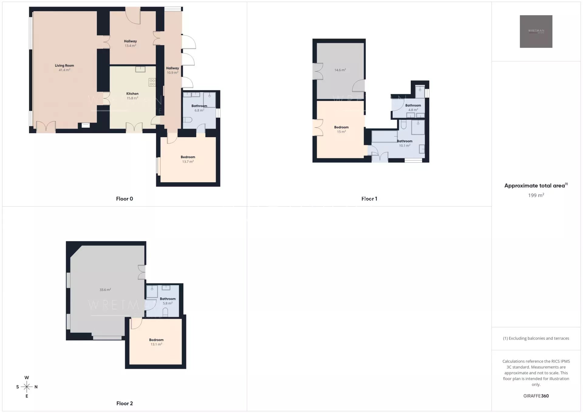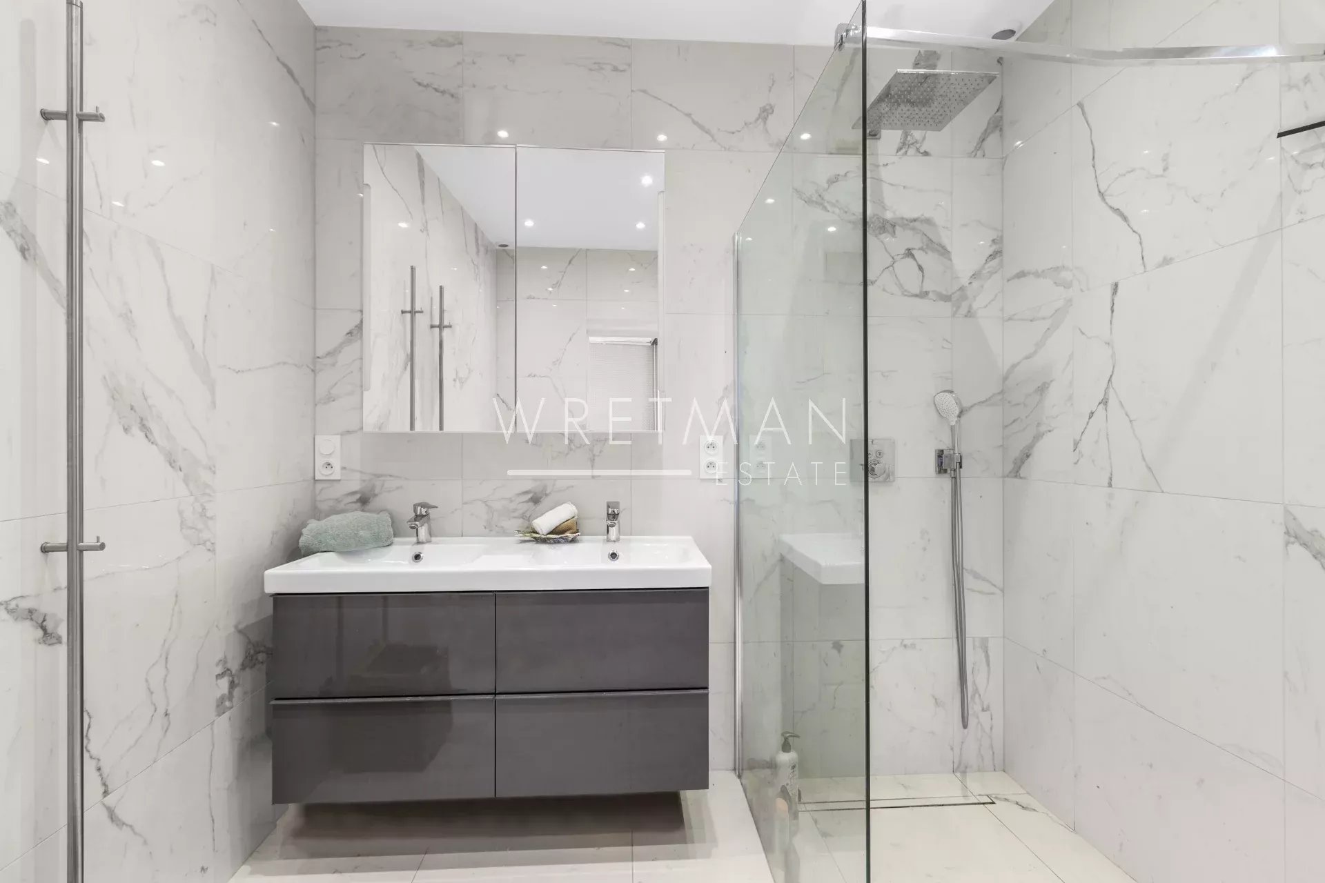 På bottenvåningen finns ett stort, ljust vardagsrum med öppen spis, ett separat kök med utgång till en stor terrass med havsutsikt, ett sovrum med badrum, tvättstuga och gästtoalett. På övervåningen finns två sviter med en 40 m² stor terrass med panoramautsikt. På översta våningen finns ett biorum, ett sovrum och ett stort duschrum, vilket ger möjlighet till en separat lägenhet.